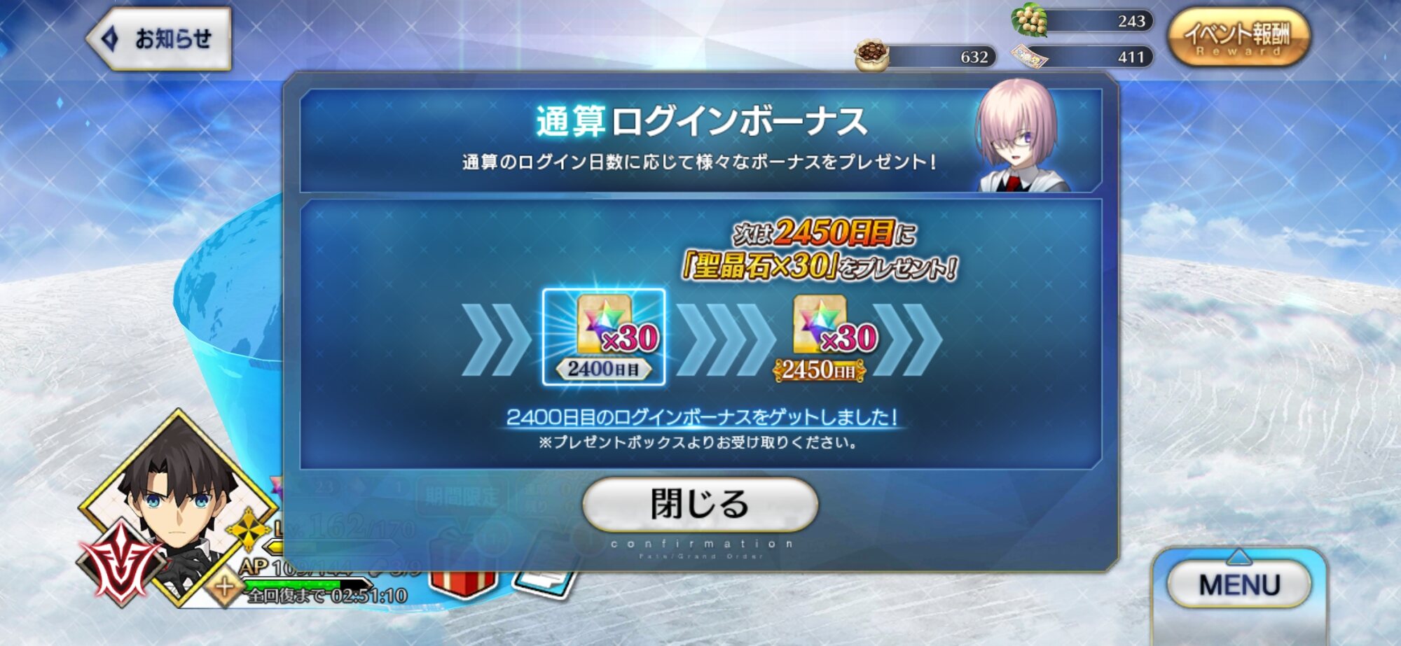 推しを Lv100、金フォウ、足跡、絆15にして、あとは宝具レベルだけ……