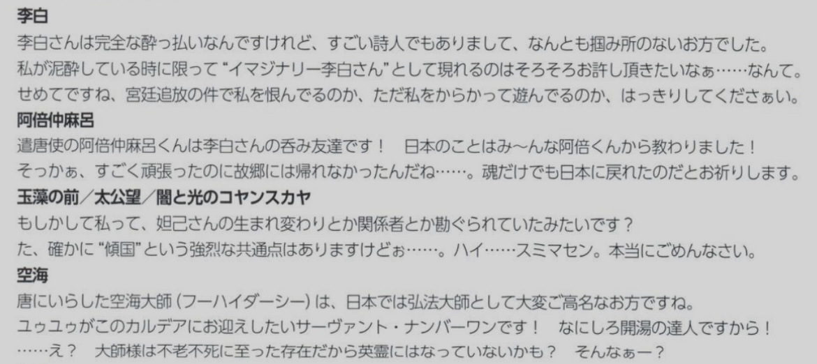 wiki情報だけど百鬼夜行に他人を遭遇させたって記述があるらしいからそこを解釈されて妖怪呼び出してるのかもサーヴァントのキャラクター原案はいろんな絵師が参加しているな