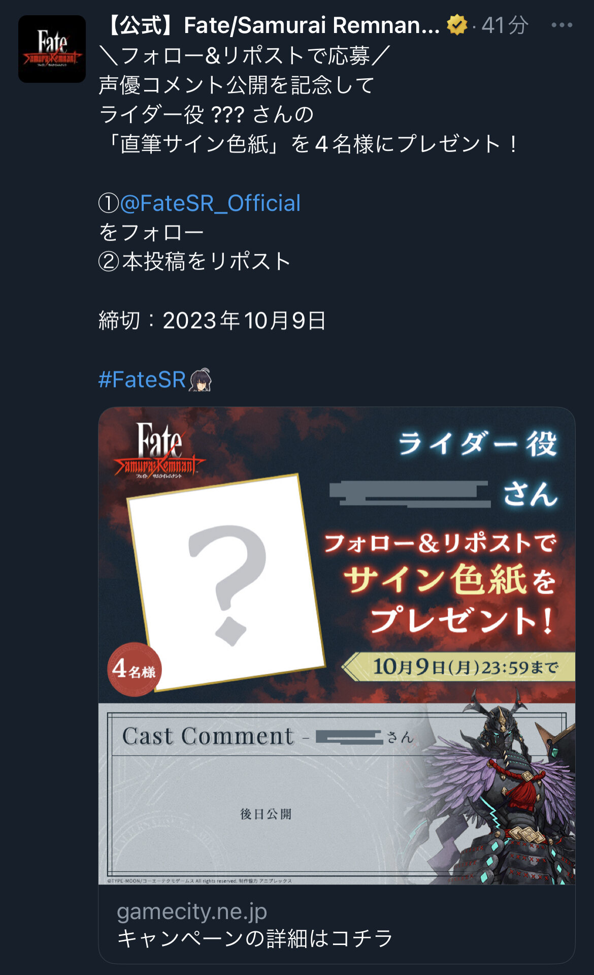 https://www.gamecity.ne.jp/fate-sr/?utm_source=youtube&utm_medium=TeaserPV&utm_campaign=sitelink&utm_id=Endscreen>>1乙。ありがとうございます