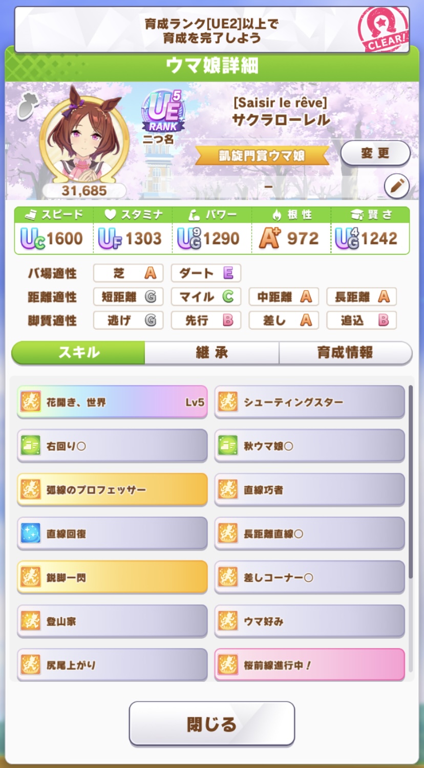 スピ2枚ならまぁわかるが、それでも相方トプロなら難易度跳ね上がるで、ラークはファン数を稼ぎまくるシナリオでは無いんで固有ボーナスそれなりだし(短距離・ダート組は育成シナリオやってるよりファン数稼げる反作用はあるが)>>59