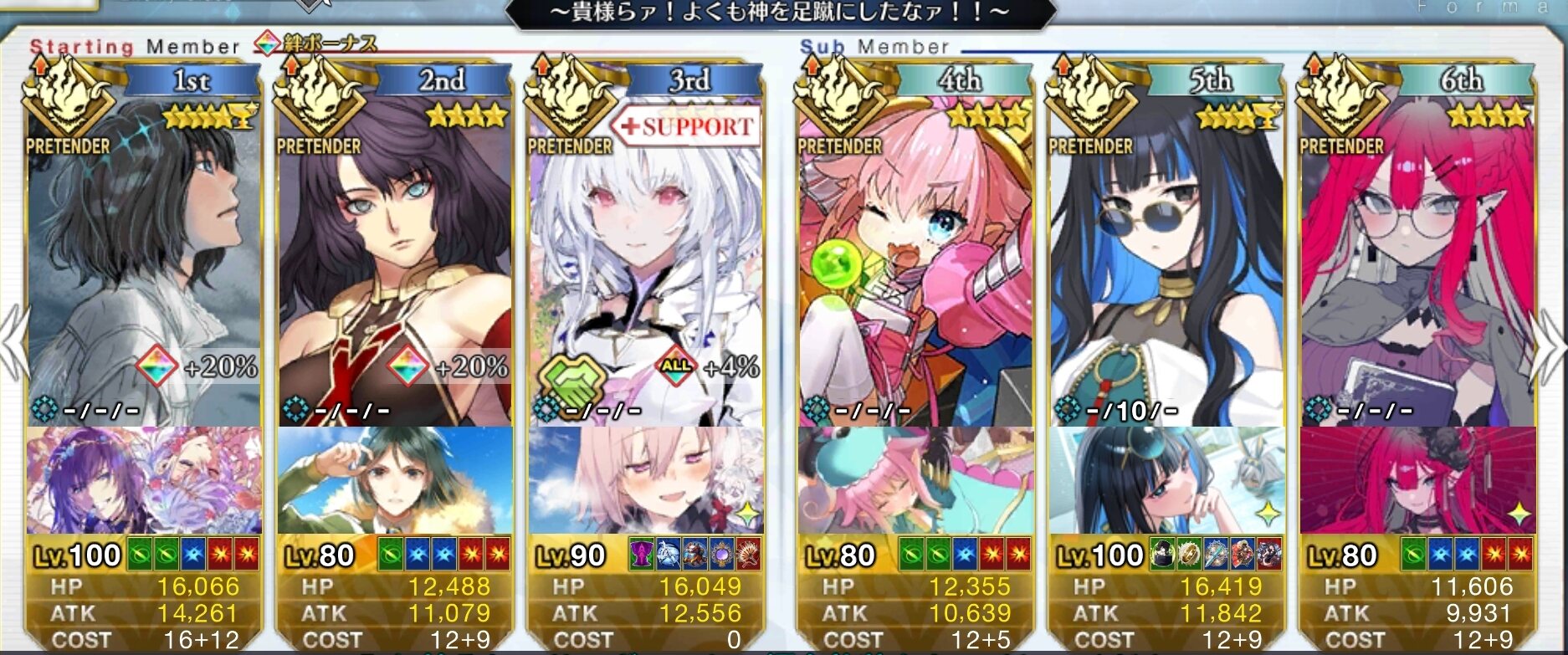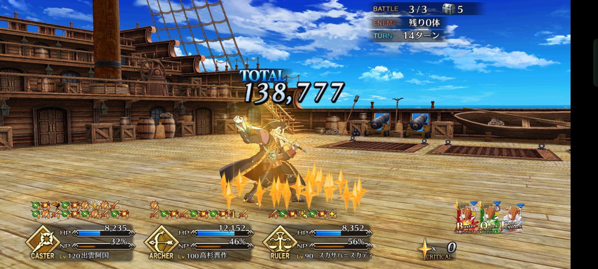 うちではイゾーさんに宝具威力アップ礼装つけてWキャストリアで相手が消えるまで宝具を撃つ体制です。>>902