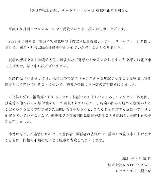 「実質打ち切り候補が6作品。打ち切りはその中2つ」
