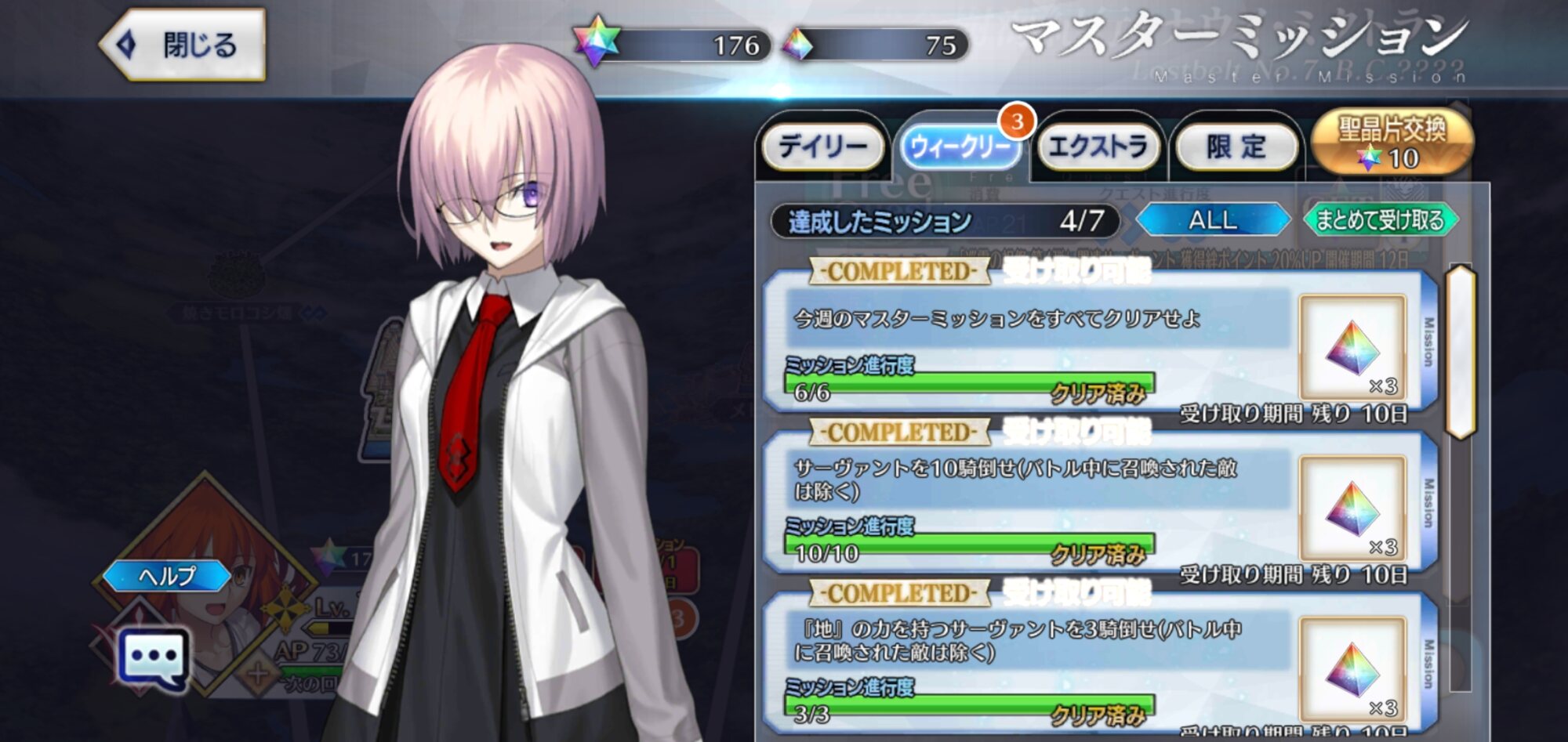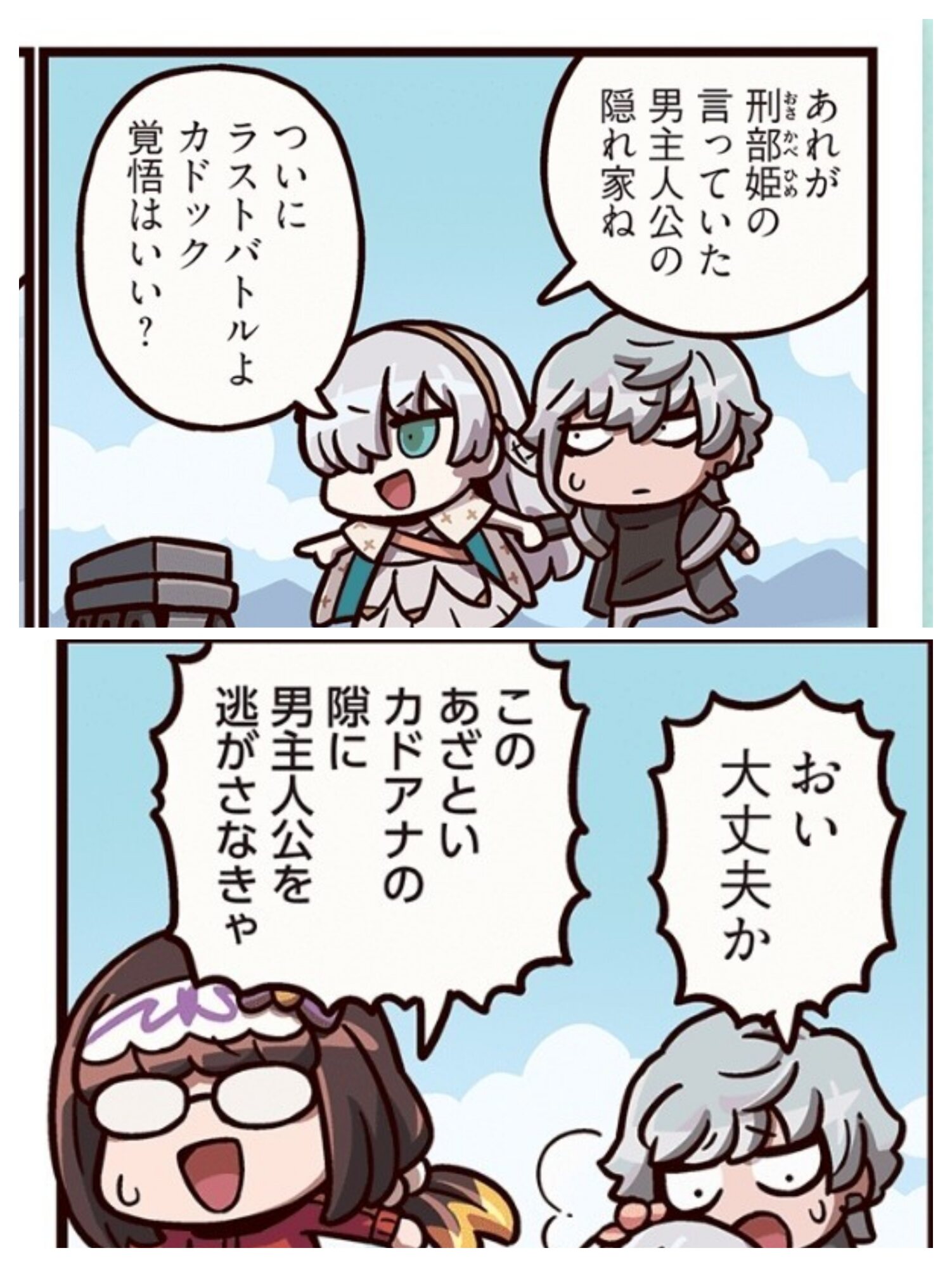 前回は眼鏡をかけるイベントだったから、次は眼鏡を取り戻すイベントにしようえっオルガクエ全員絆ボーナスもらえるのかティーポット使い切ったばかりだよ持ったいねぇ