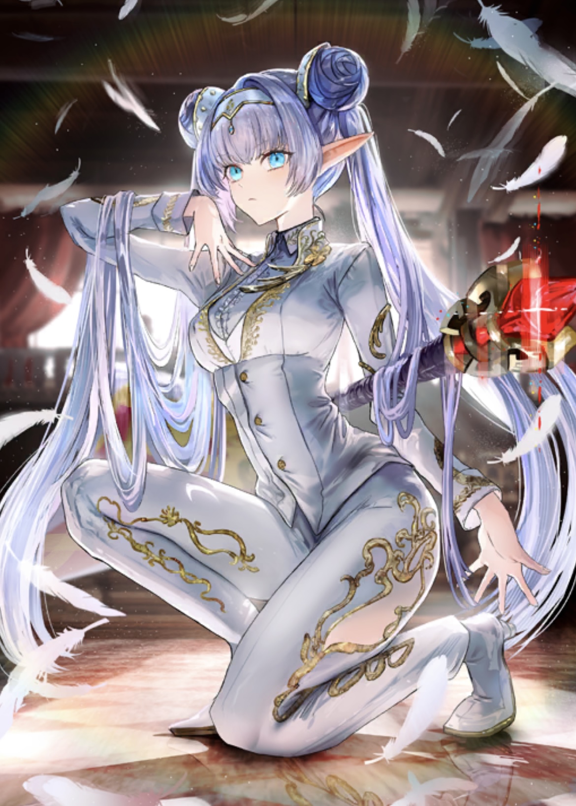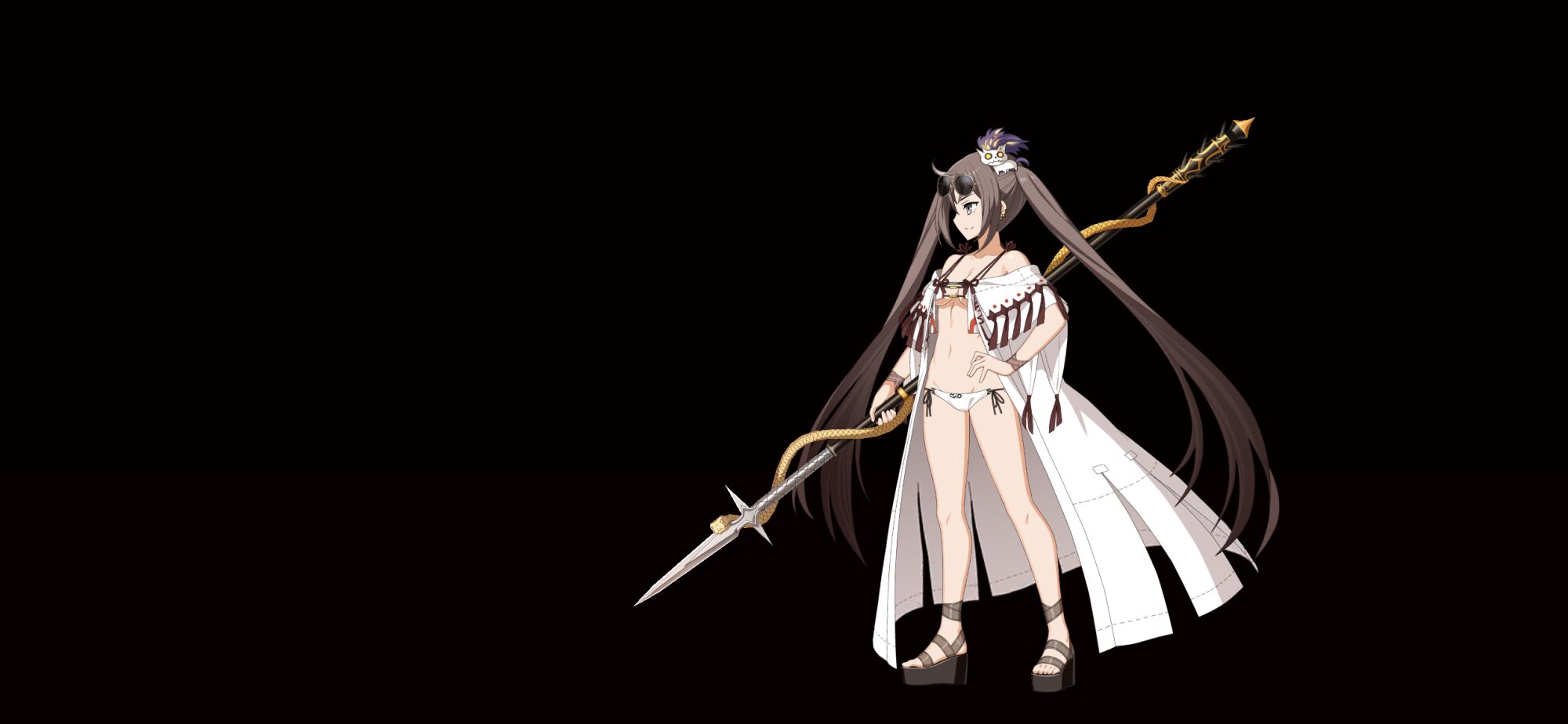 そして忘れてはいけないのが…横に一本引かれた線のような「刀」・・・!! この曲線が巫女服の阿国さんの存在感をさらに強調していると言えます。やっぱ和服美少女に大太刀は最高ですよねタマモアリアちゃんもいいと思います。