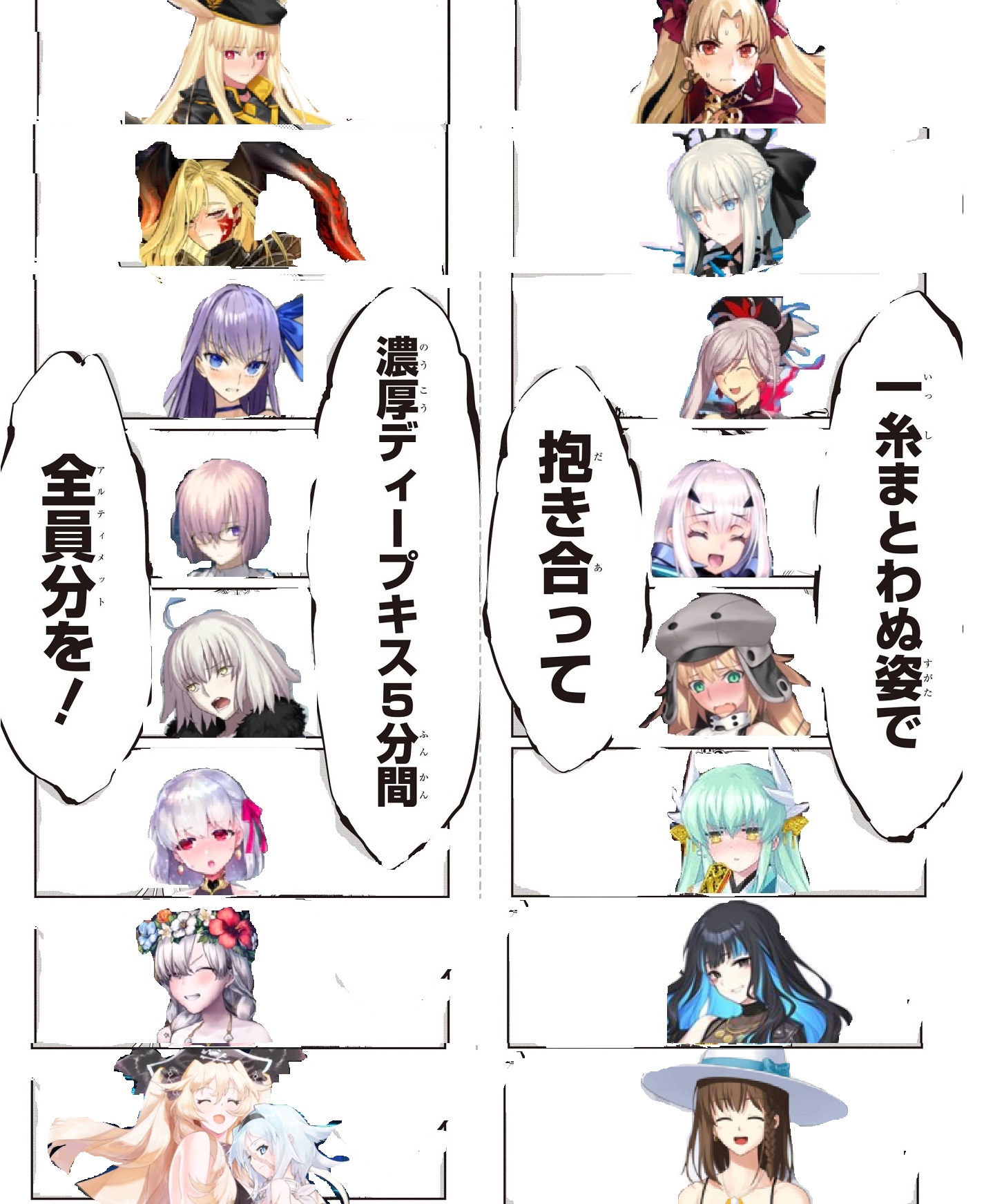 ケイローンやアーラシュ、アタランテとかは大人しくて優等生っぽいけど、傲慢な英雄王やテスラ、常に喧しいアシュヴァッターマン、無茶苦茶なアルテミスとか癖強い人はとことん振り切ってる>>2