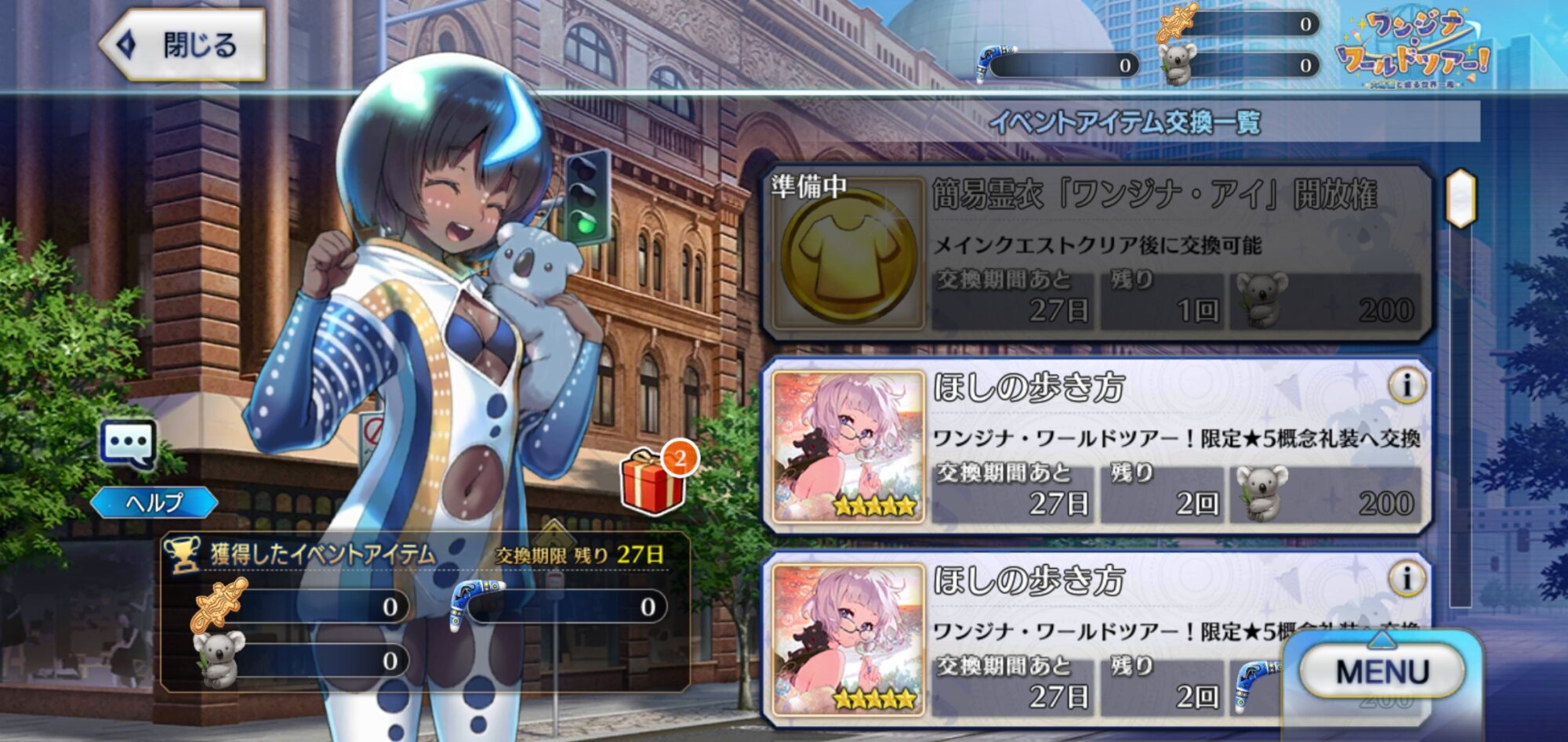 期間限定イベント「ワンジナ・ワールドツアー! ~大精霊と巡る世界一周~」の専用スレッドです。