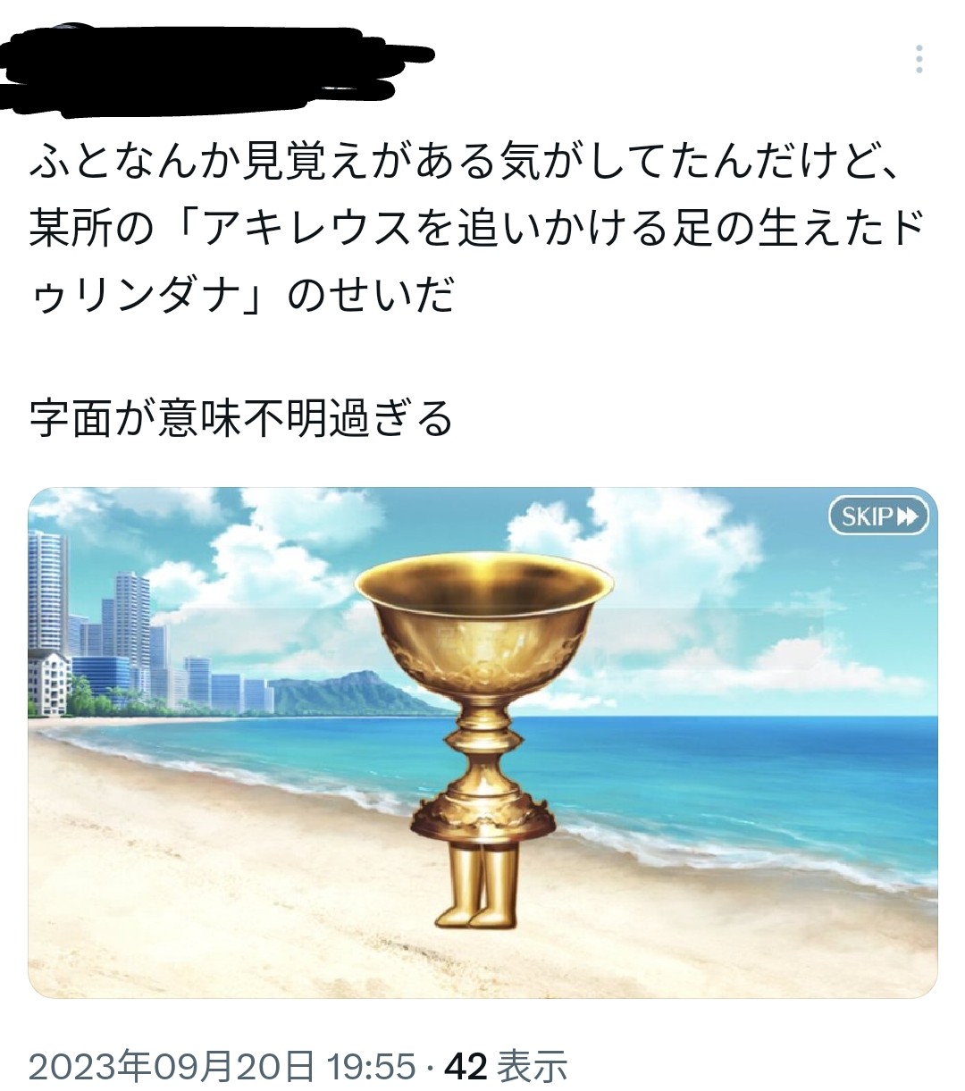 足が生えて逃走とかジェット噴射までは笑えたけど、瞬間移動とか気配を消すまでになるといよいよ事態がヤバくなって来てるな……このトンチキ聖杯。