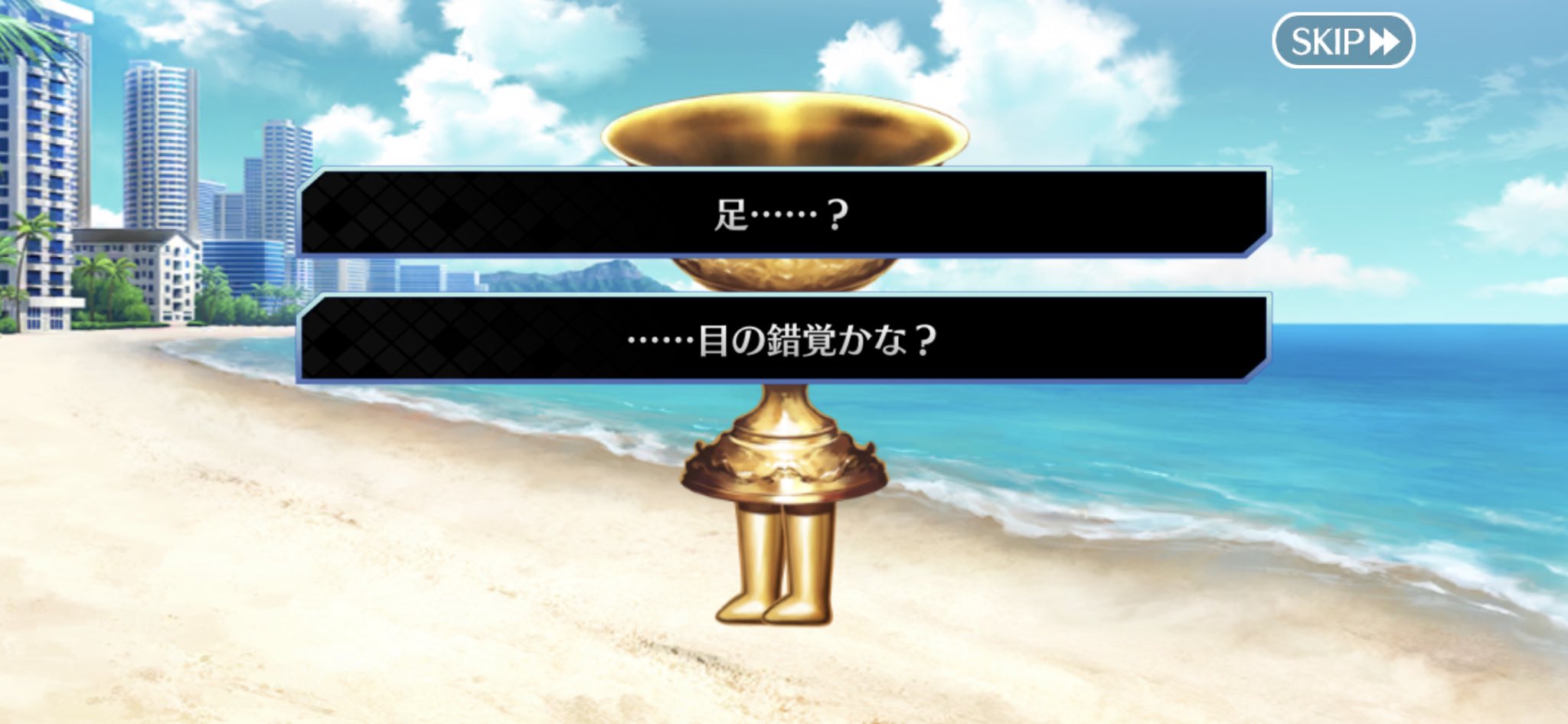 あの聖杯は誰のどんな願いを叶えて、逃げ回っているのかという話よね。なあ、うすうす思ってたんだけど、このイベントってトンチキじゃないか?