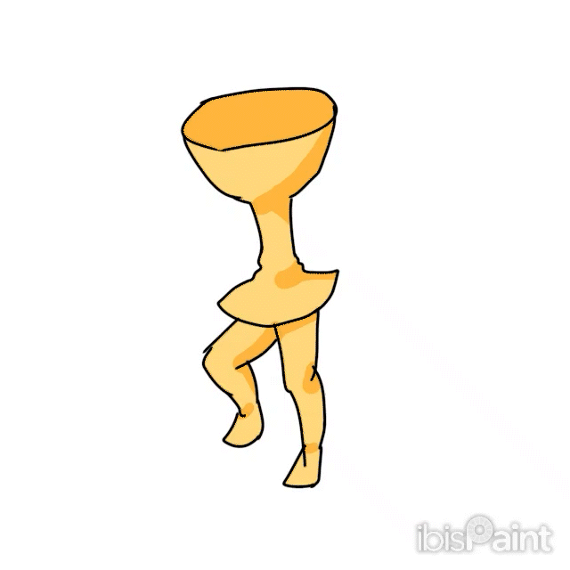 ろくろ陶芸の陶器に足が生えた感じの色合いですね。そして、土台部分がスカートのように見える。