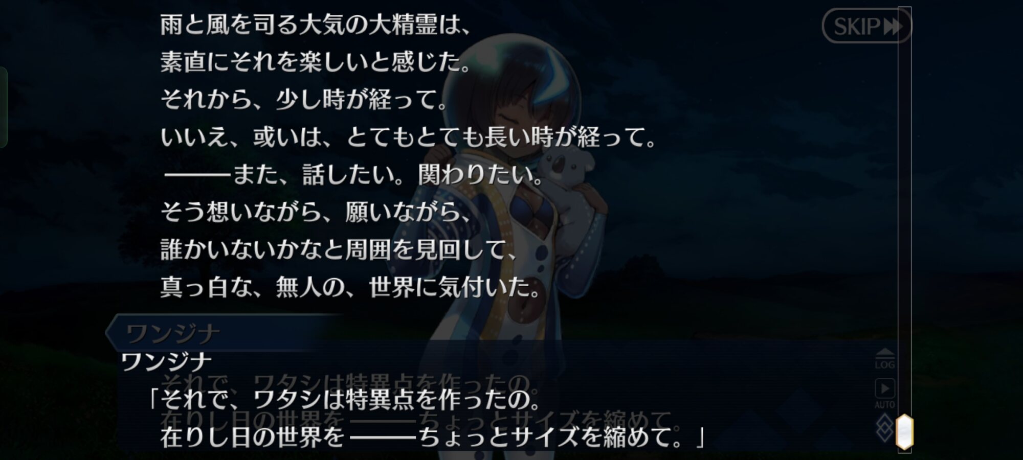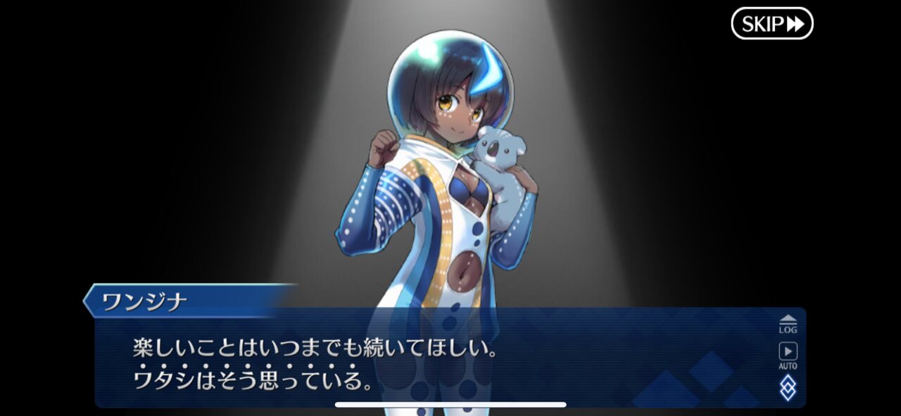 ただそういう思いを夏イベで解決してる気はするのでどうかなという気持ちと、今回新たに参戦するにあたってより深く掘り下げる可能性も考えられる気持ちがあるあとユニヴァースへ渡った理由ってマテリアルにあったりする?そもそも現代の地球と地続きなのか怪しい、仮にそうだとしてもオーストラリアに紐付けられてるワンジナがそのままあっちへ移行できた、というのはどうにも違和感が…