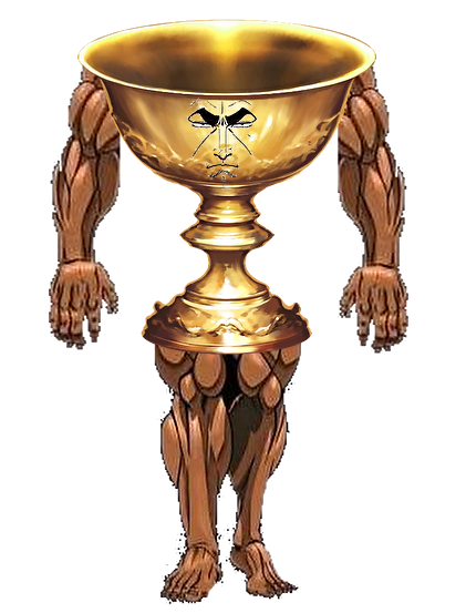 生首だけ聖杯でそれ以外はギリシャ彫刻のような肉体美を持つ聖杯さんしかしメジェド様みたいな足だなあ……