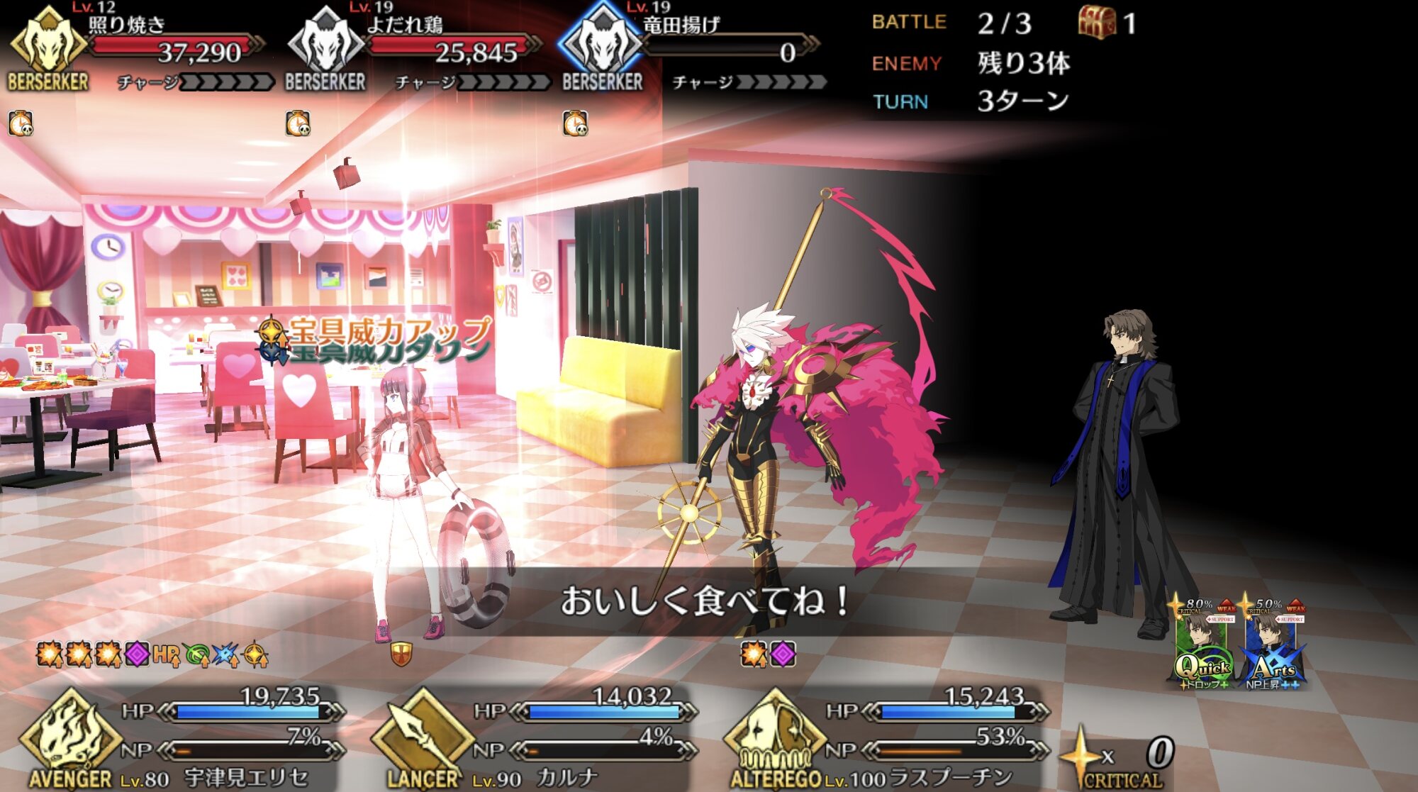 うちの陳宮はレベル120の金フォウマのパーフェクト陳宮なので等倍でも余裕>>919