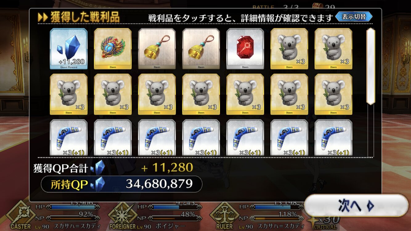 珍しいタイプの特効入りだな術クッキーと小鐘が落ちるから90+を太歳星君とクリームヒルトさんで周回するかー。