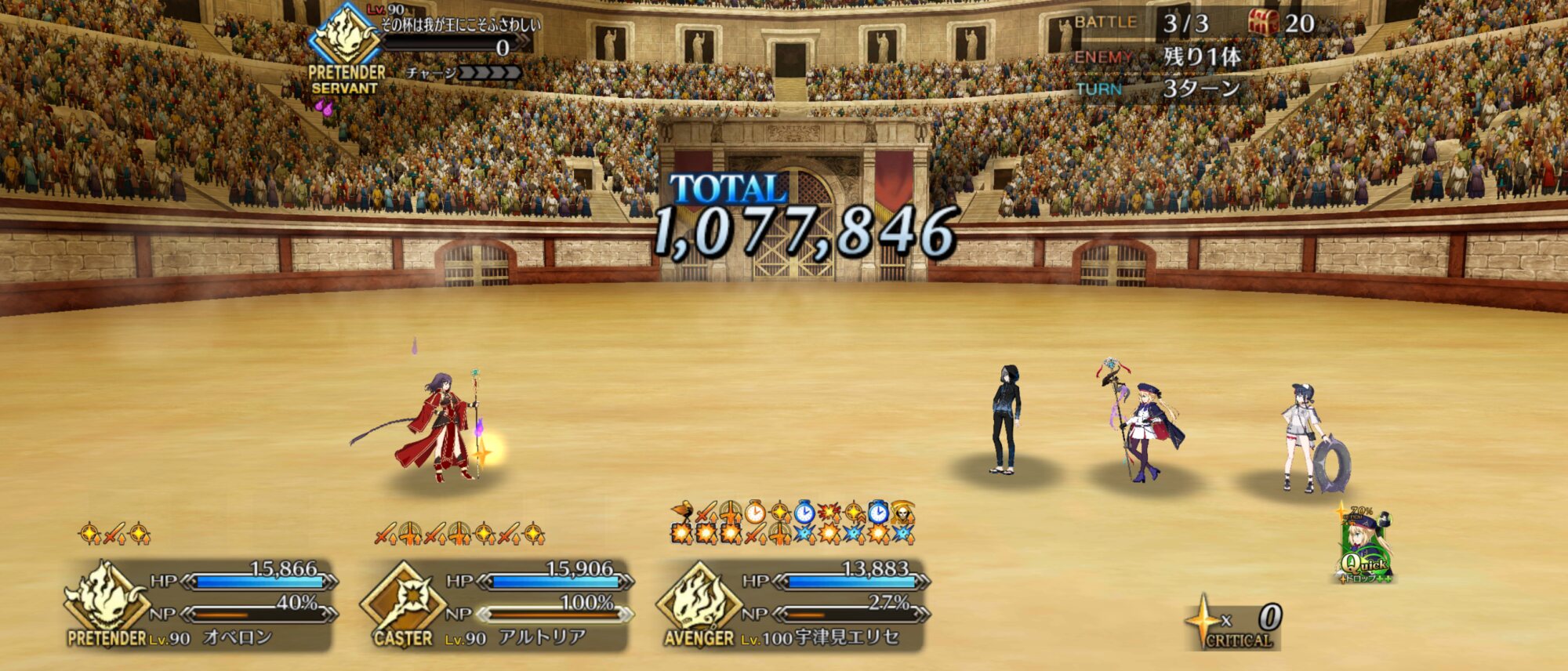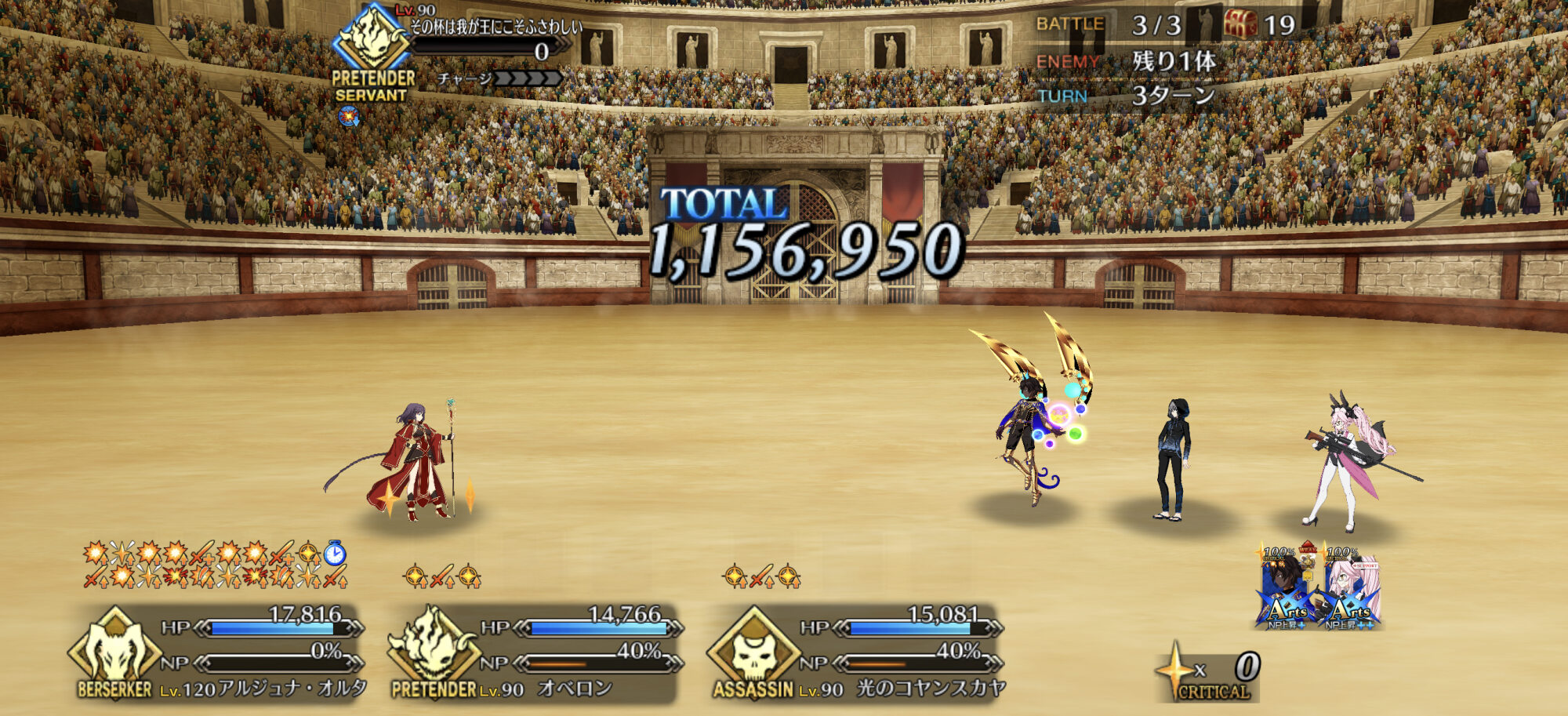 90+言峰バサトリアAAでオダチェンなし特攻礼装なしでやってる