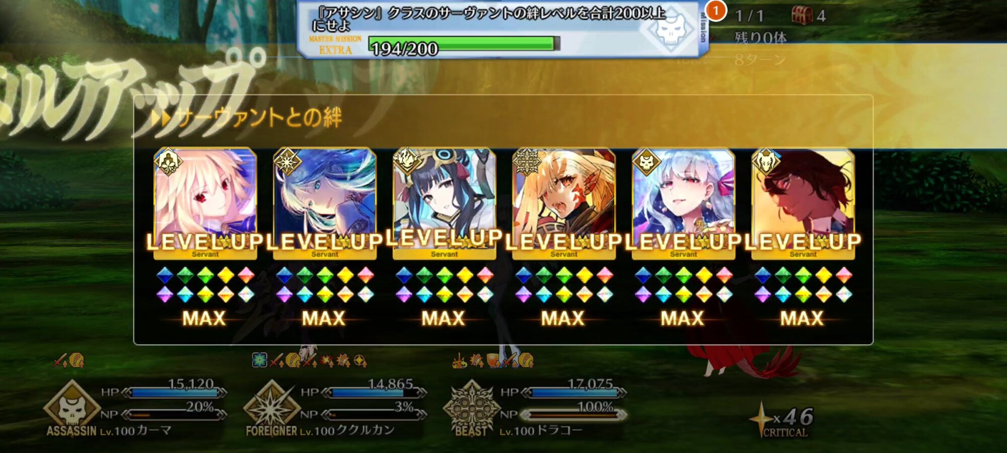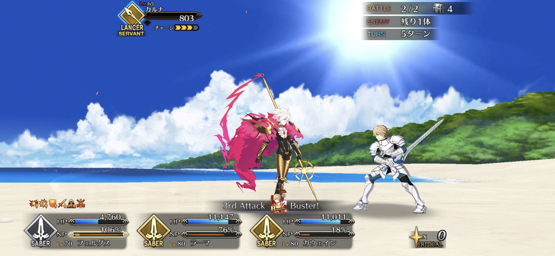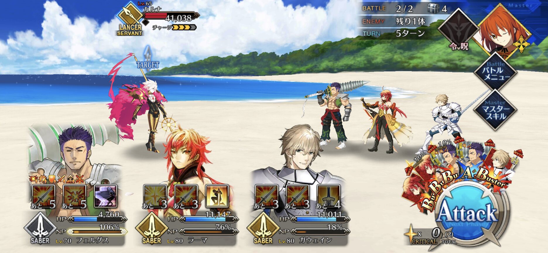 とりあえず備蓄ーバサトリア宝具4なので、ワンジナは全力見送りできるから