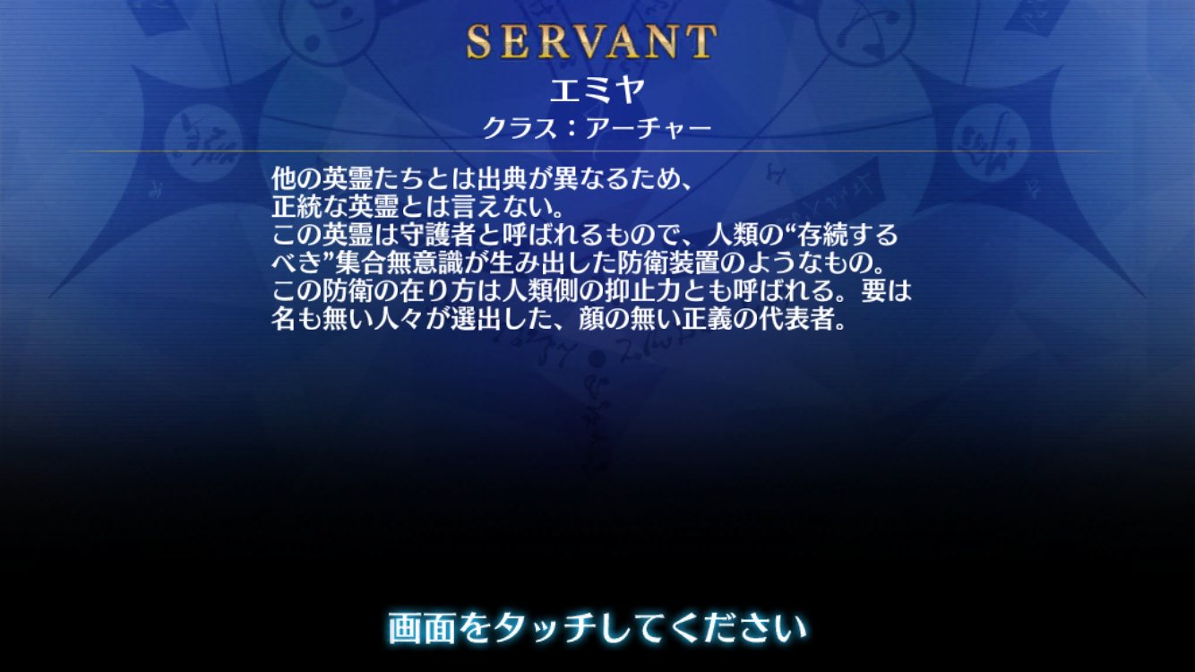 士郎ではなくエミヤの話題で申し訳ないが、FGOのエミヤのボイスが更新されてるぞ。