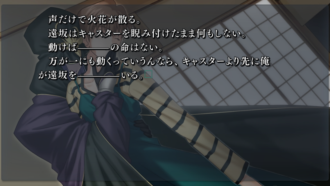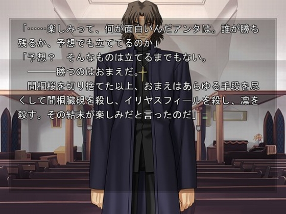 駆けつけた凛に事情を聞き、聖杯戦争を終わらせるべく、セイバーとともに魔術師同士の殺し合いにその身を投じることになる。機械じみた行動原理のねっこの人間的な願いがすき