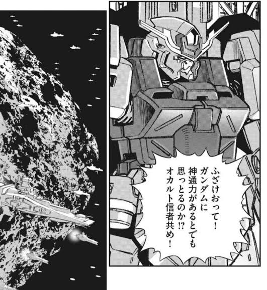 第一話からして「銀色の脚!」って言いながら生身で脚から斬撃飛ばす格闘家が出てきて、ああそういう世界ねって納得するしねなお、見た目が変な技である電影弾ですが、量産型とは言え100体ぐらいはいそうなMSの群れを全滅させるとんでもない大技です。他の世界だったら間違いなく警戒されるだろう大技です。