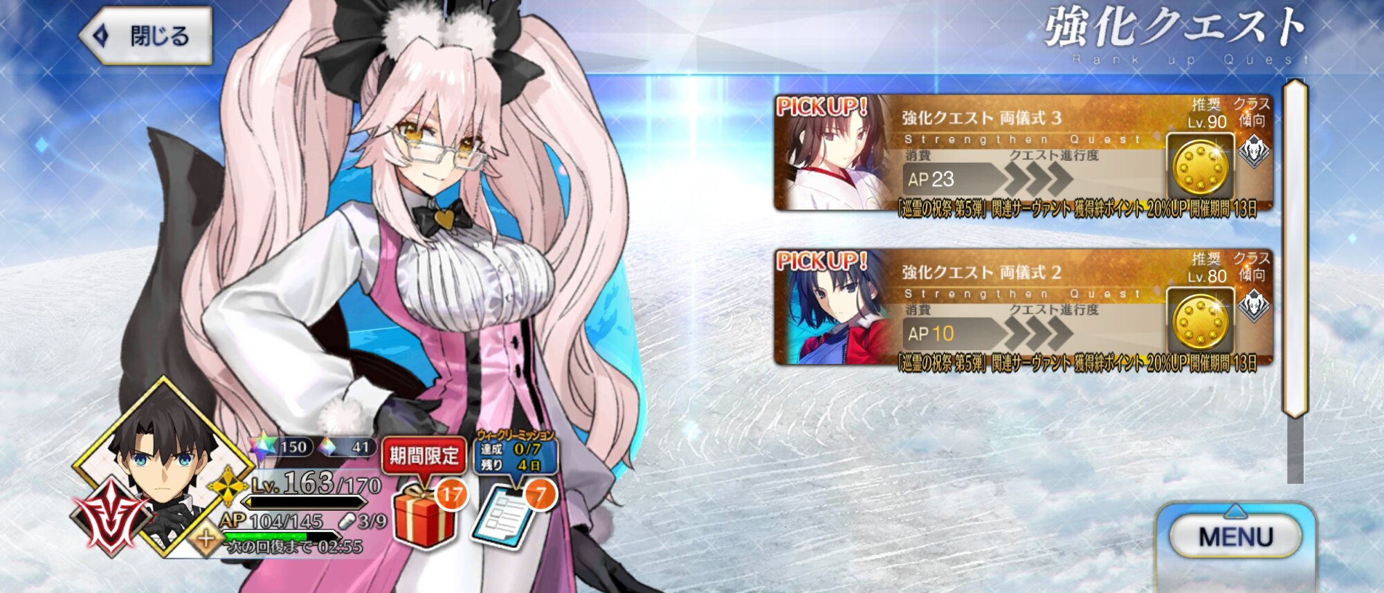 ワンジナは引けなかったけど、若奥様が宝具5になったからハロウィンエリちゃんを倒しまくってるよ