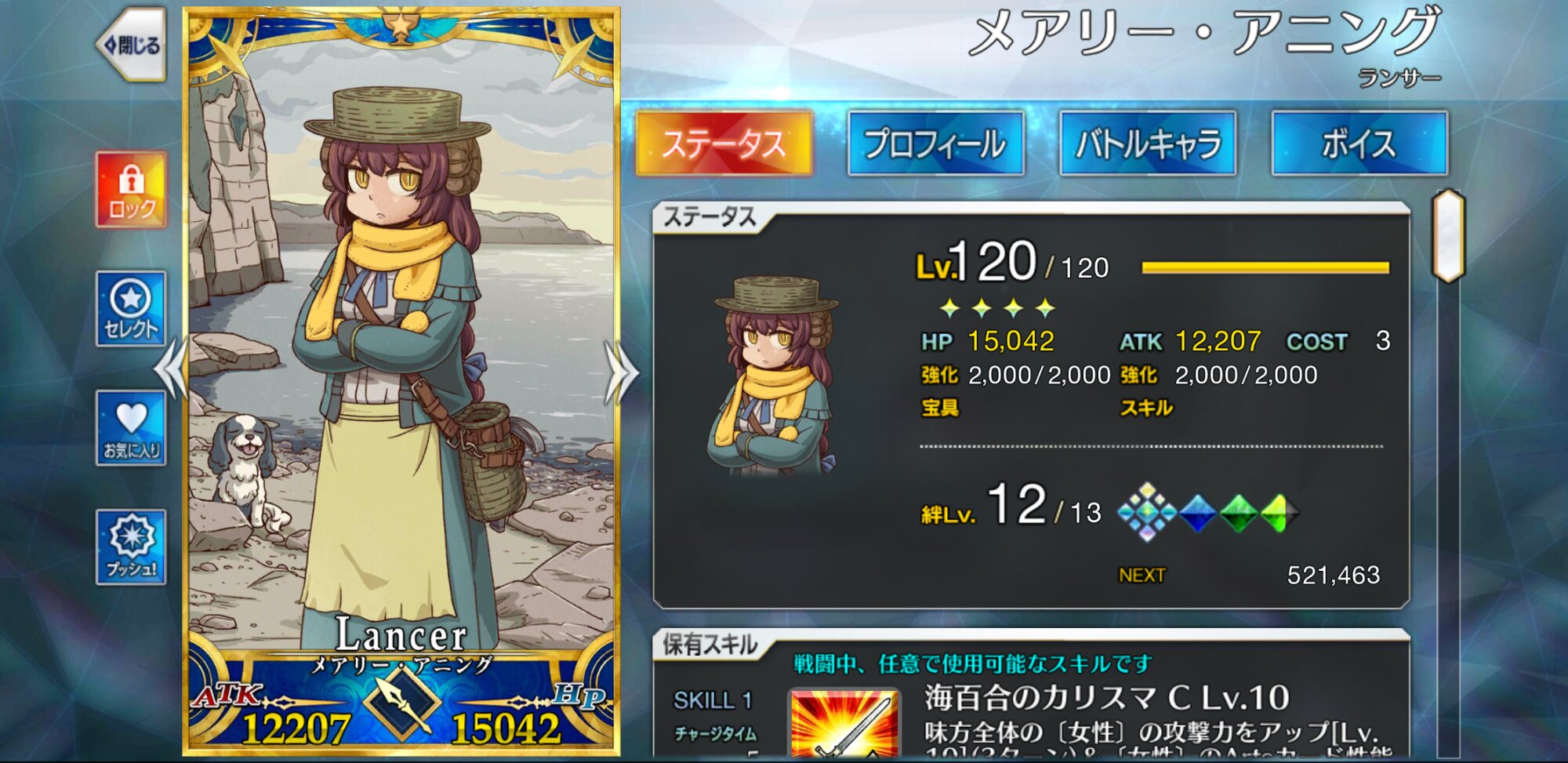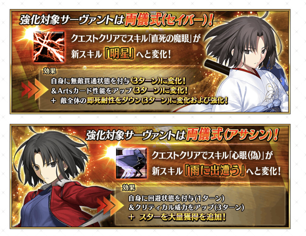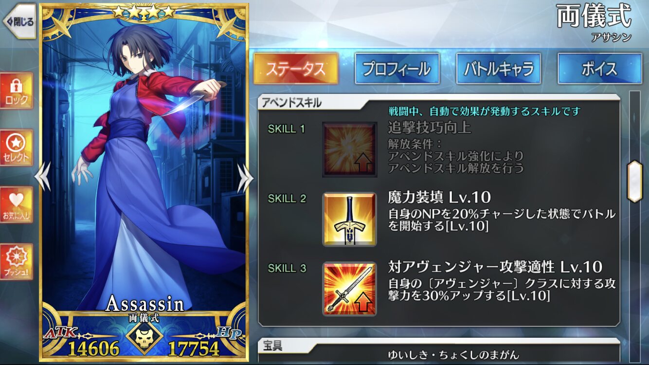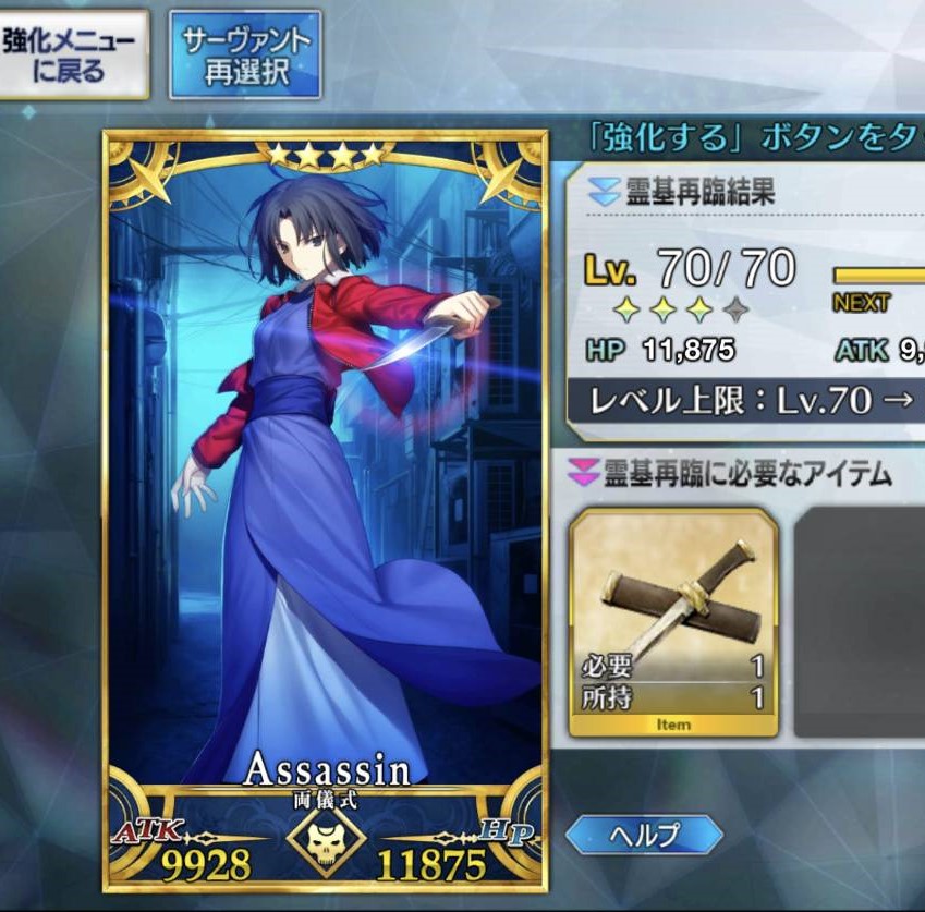 ☆4スト限or期間限定:完全体に必要なのは宝具10絆14、ガチャの期待値としては☆5よりは楽、とはいえ要求絆は多い上に☆5よりPUが来ないのはキツい