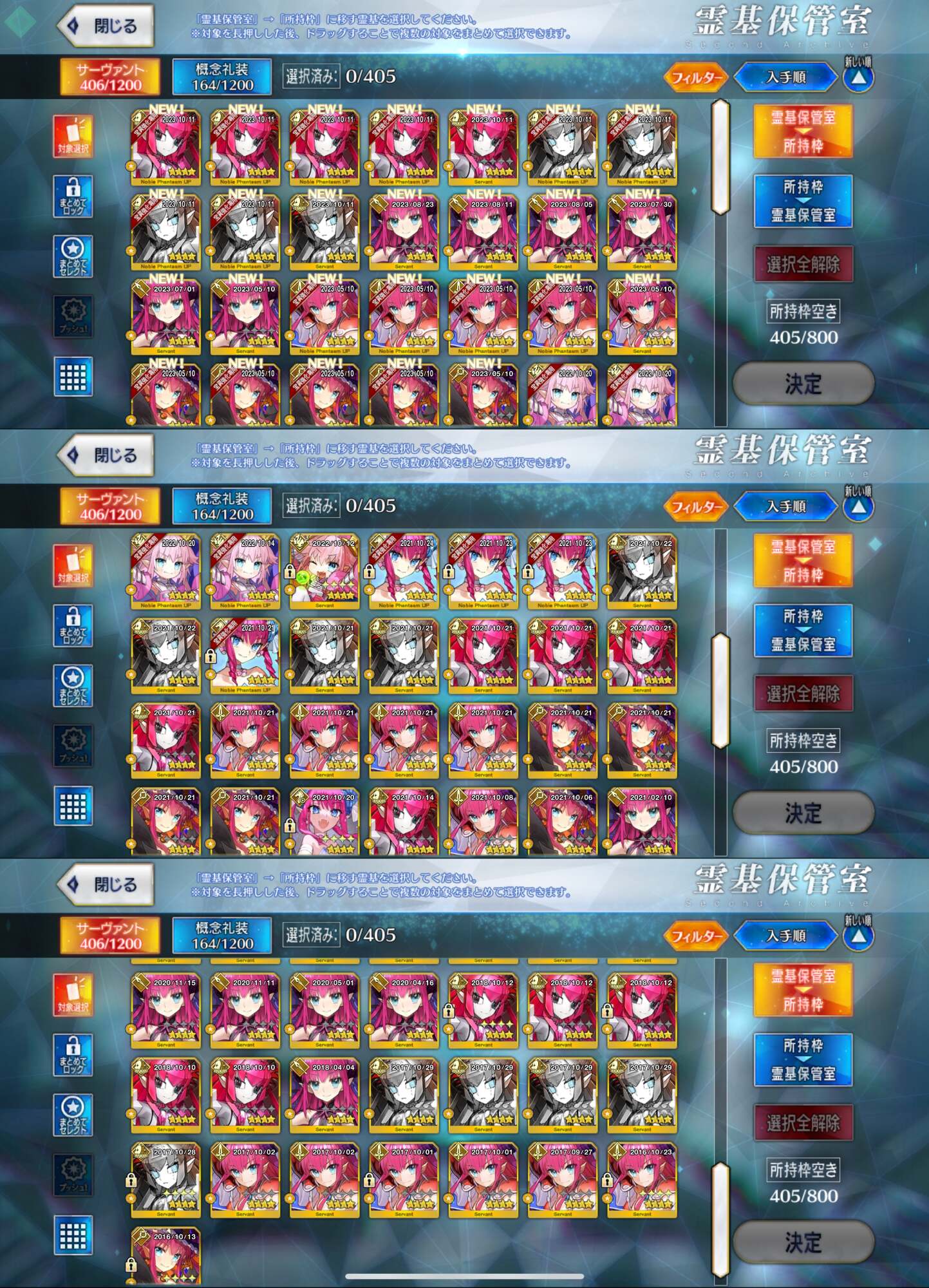 ☆4恒常:完全体に必要なのは宝具16絆15、すり抜けで引ける可能性があるとはいえ、ガチャ期待値が☆5より僅かながら低い+最少数で済ませようとしたら結局絆15まで上げなければならない上、下手したら期間限定組よりPUが来ないこともザラなので恐らく一番キツい