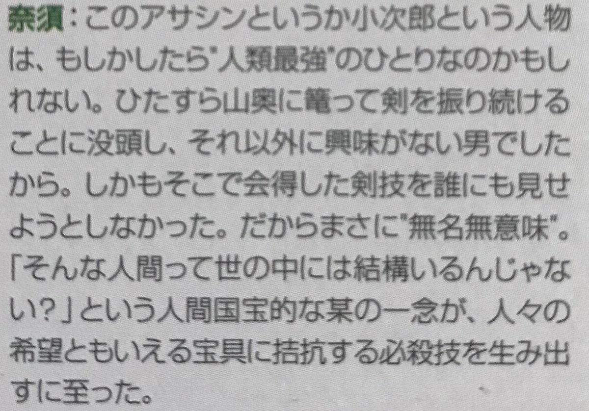 小次郎は剣の道を極めんとする達人が増えた事で異質さが増したと言うか