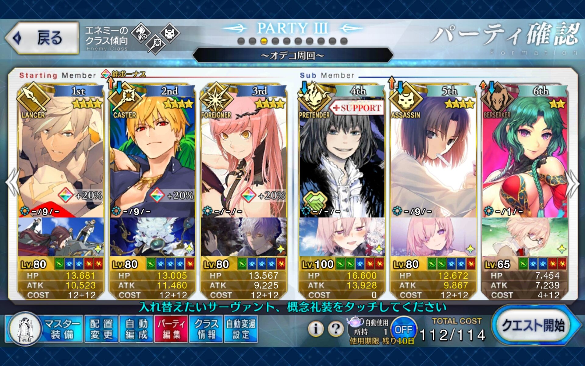 星5サーヴァントと星5礼装で前衛固めても84、30近くもあまるじゃん。