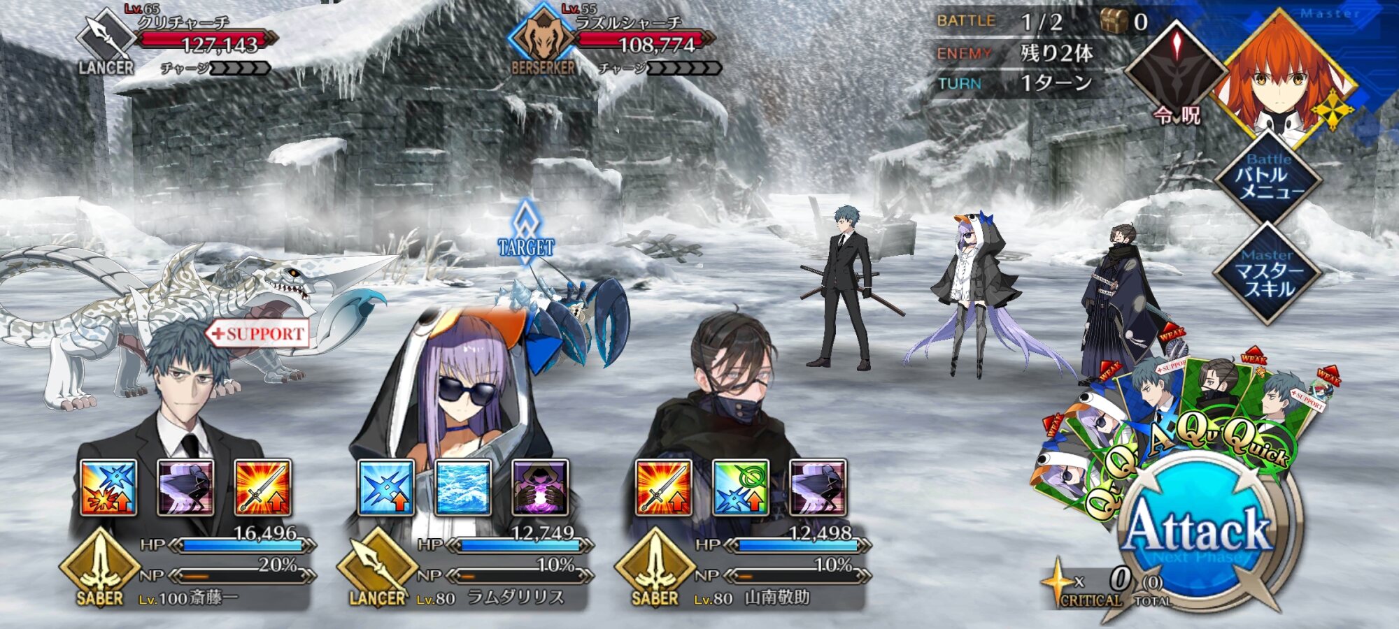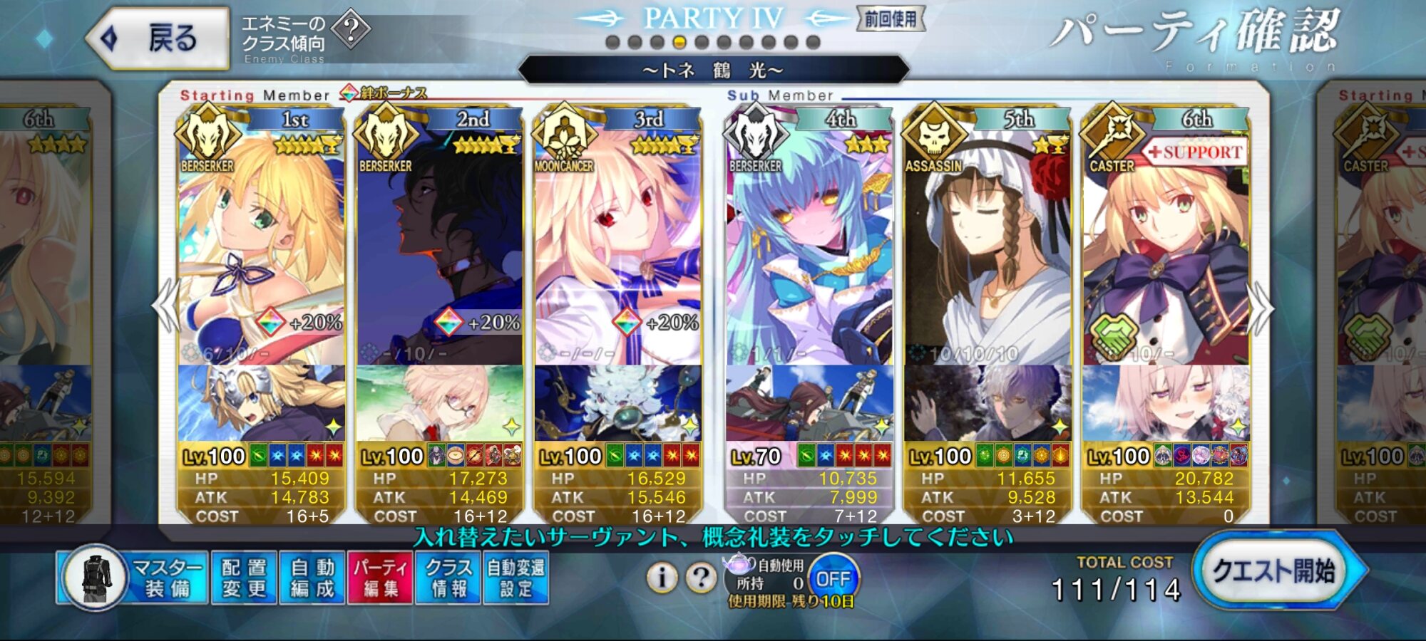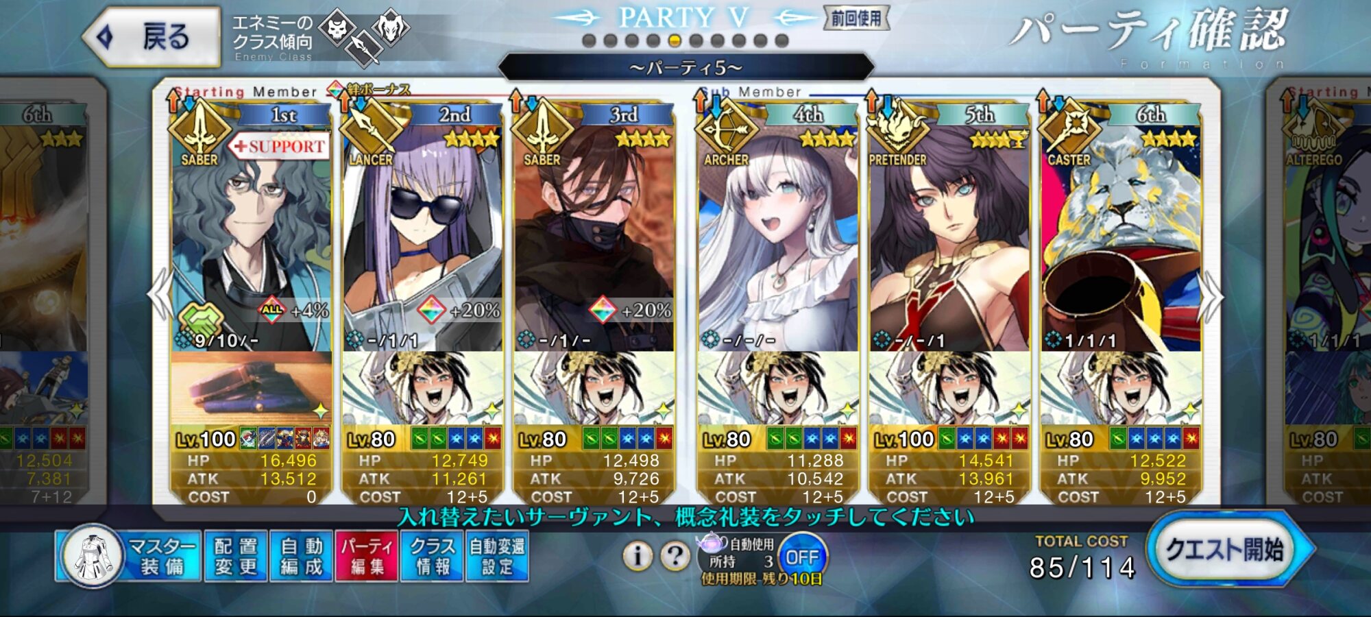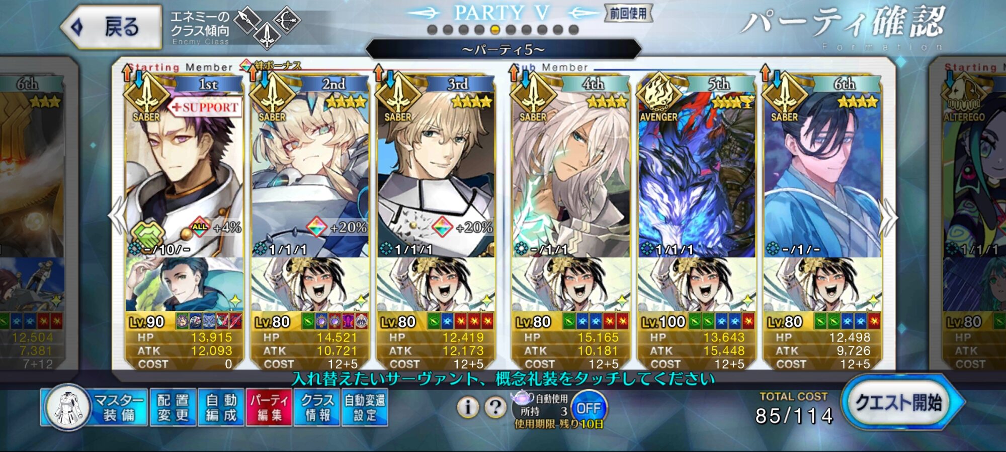 自分は、エジソン、トリスタン、エミヤオルタ、メディアリリィ。>>874
