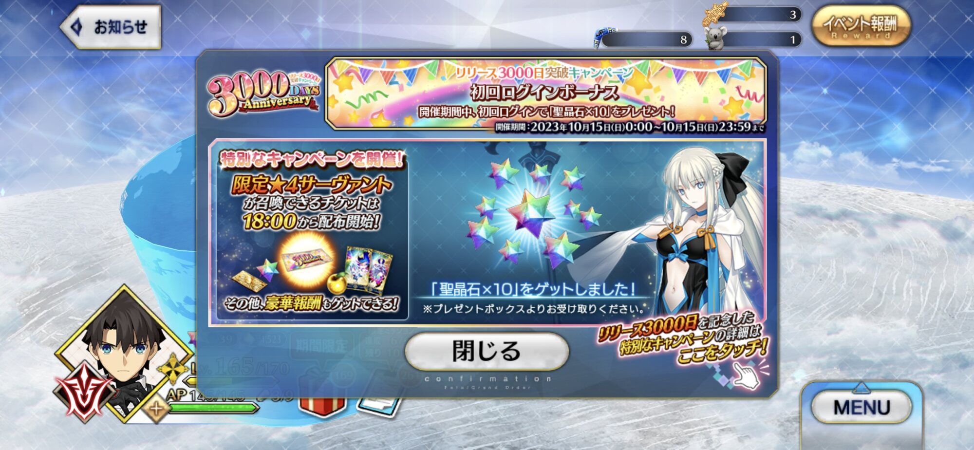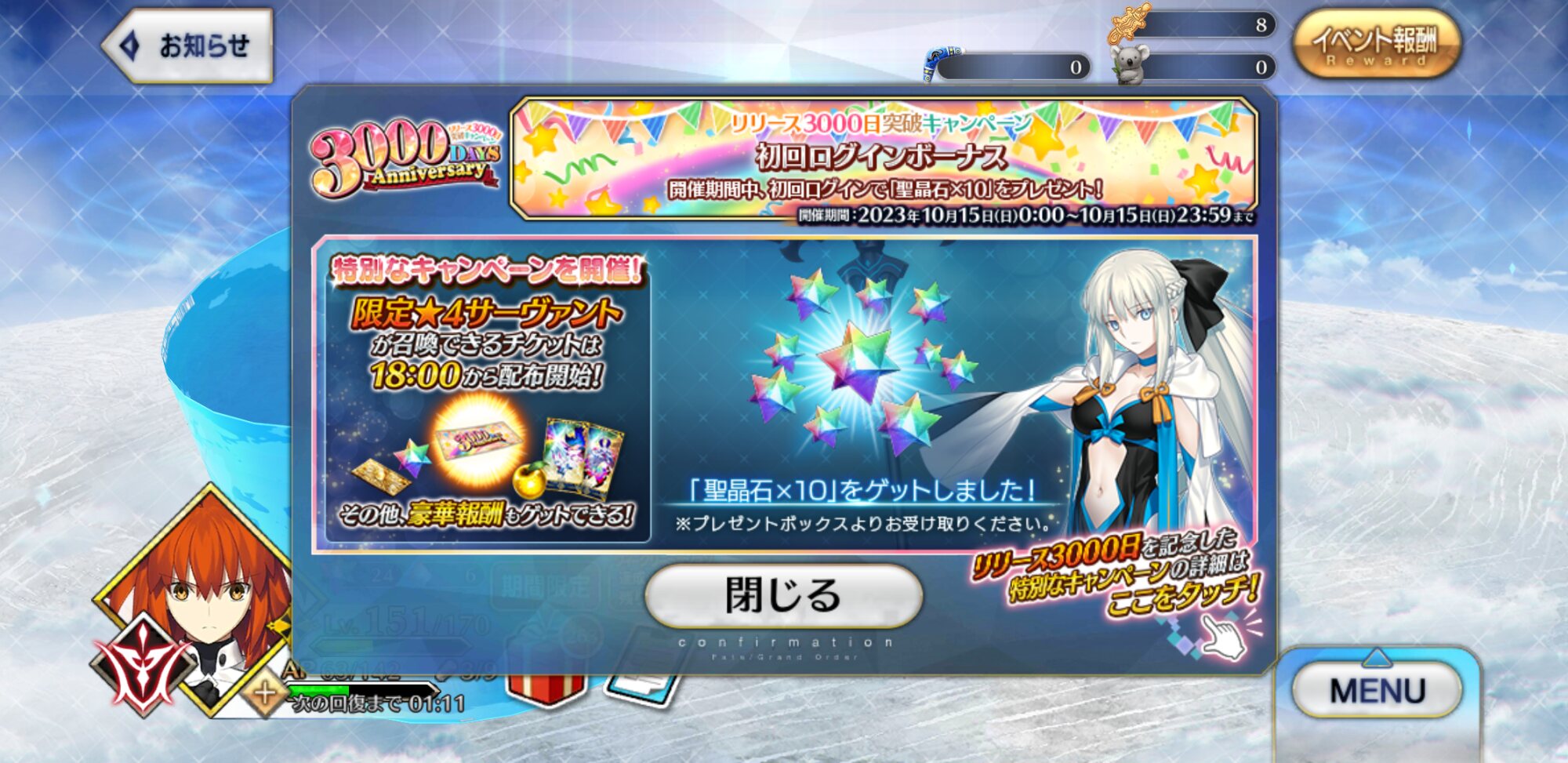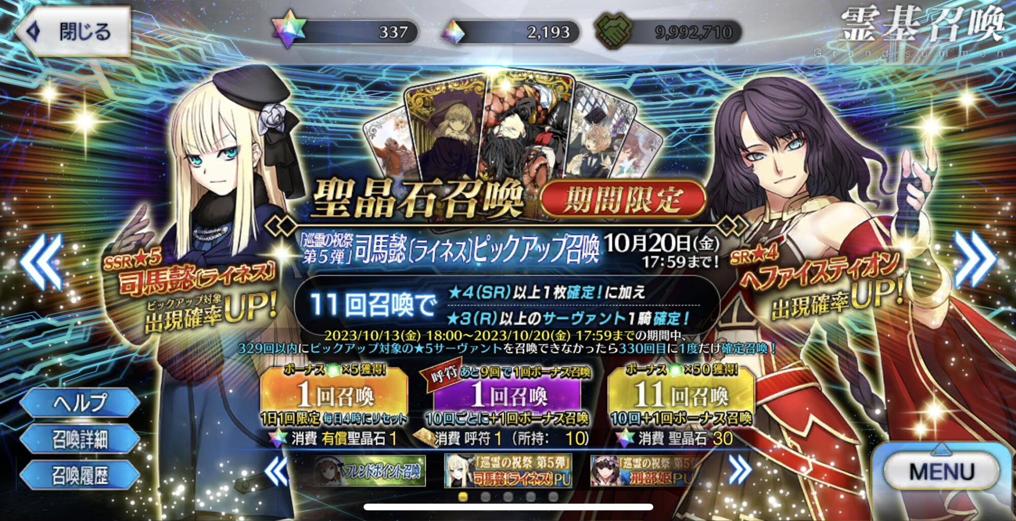 はなまる行くか……聖晶石で出来た隕石落ちてこないかなあ