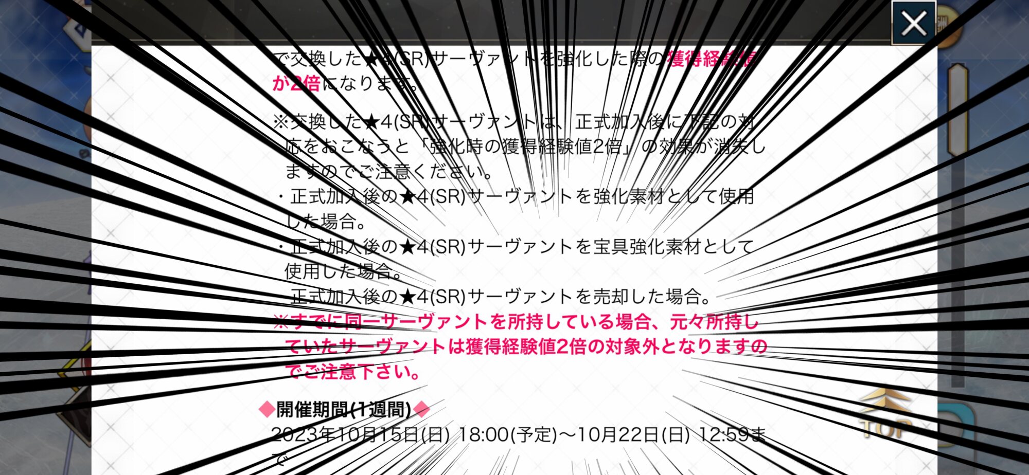 R18関連話題、よくてよ無しのガチャ結果、実装から二週間以内のシナリオ及び開催期間中のイベント内容、進行度依存の報酬、最終再臨や霊衣解放の画像や話題は専用スレにてお願いします。