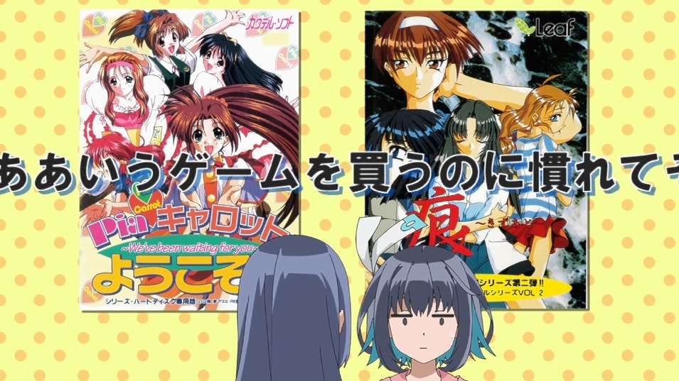 作中でも出てくるパッケは軒並みエロゲーだし、美少女ゲーム=エロゲーって認識ウマ娘アニメでドゥラメンテが三冠取れなかった後に現実でドゥラメンテ産駒から三冠牝馬が出てその後にゲームで初代三冠牝馬が出てくるこれが一週間の出来事である