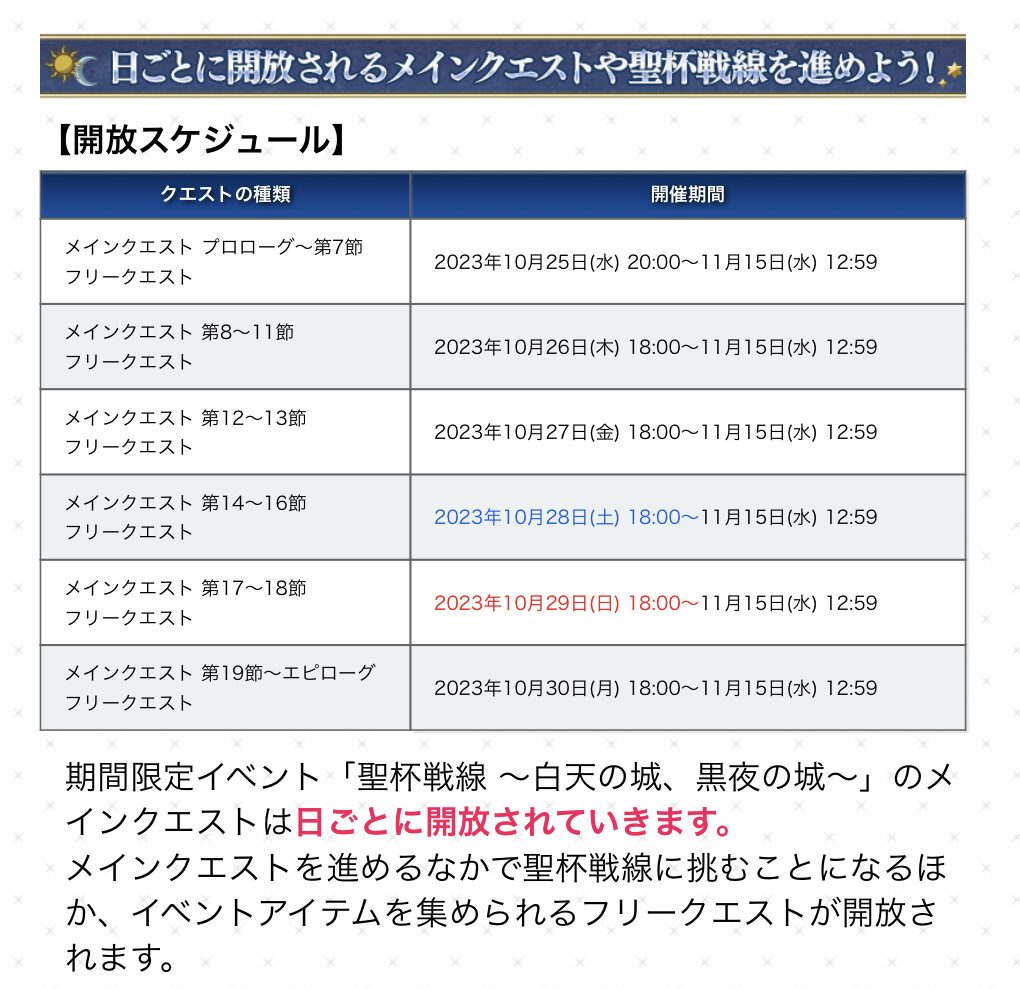 期間限定イベント「聖杯戦線 ~白天の城、黒夜の城~」の専用スレッドです。