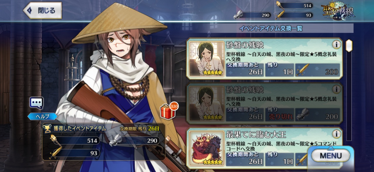 後で霊衣追加する可能性はあると思うMAPがばらけすぎてて今日更新のフリークエがどれかわかりづらい・・・。