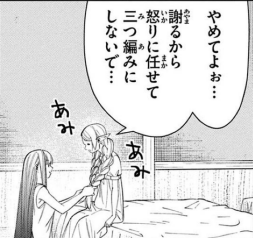 宿に帰ってきたシュタルクは無言&無表情でフリーレンを三つ編みにし続けるフェルンを目撃したとかしなかったとか>>122