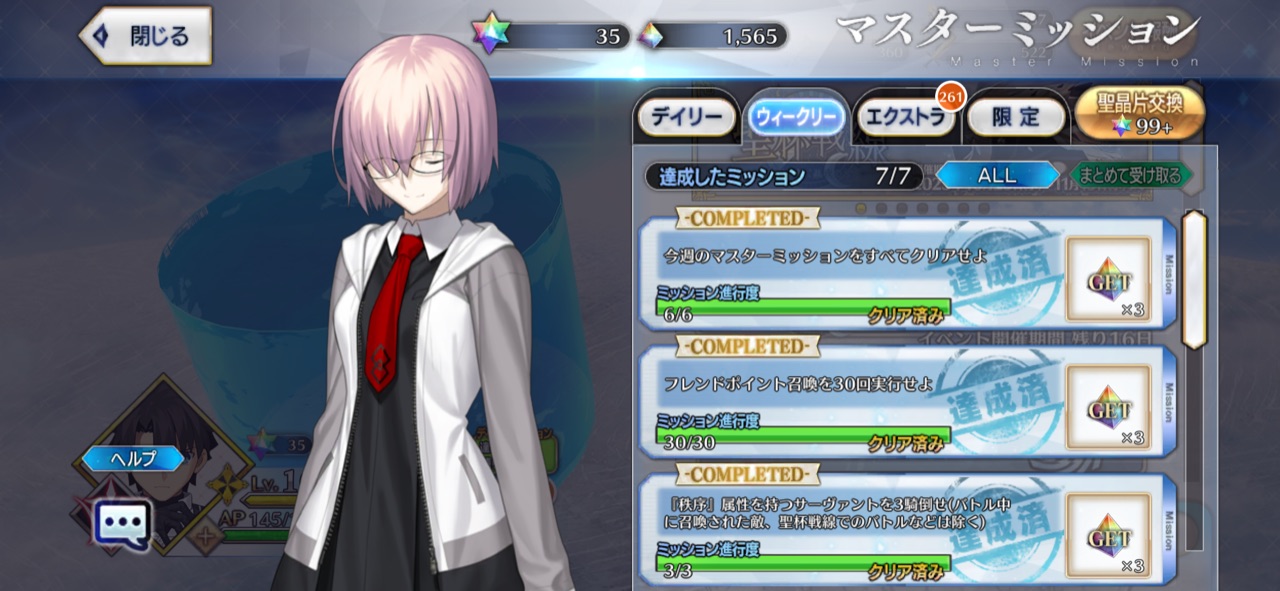 ゲストサポートのプトレマイオスも杉谷さんも強いしね!ありがてえ!将来的にあと三人は聖杯サーヴァントが増えるんだよな(いつか来る別霊基グレイたん、奏章Ⅲのあの子、イベスレ案件のあの子)