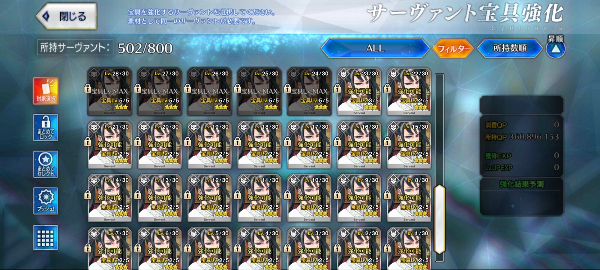 宝具52体って多分なかなかいませんよ?1000なら補助宝具