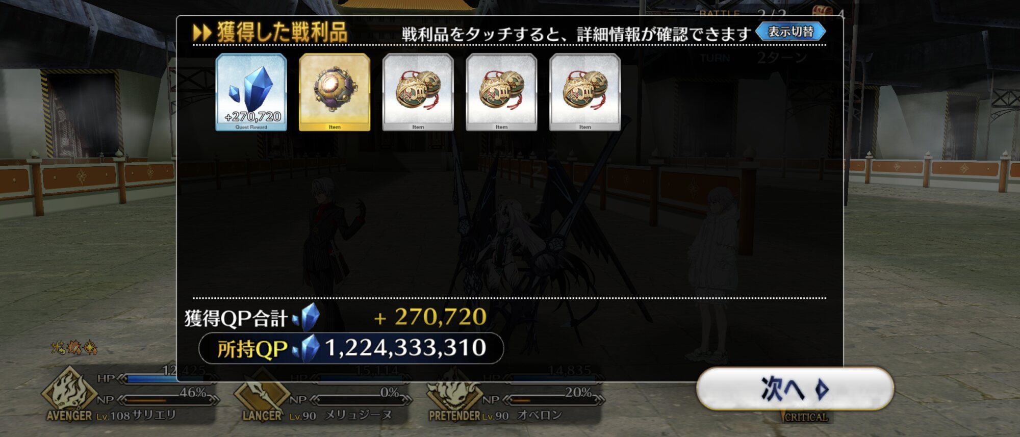 種火回る、食べる、QP枯れる、宝物庫回る、種火回る……