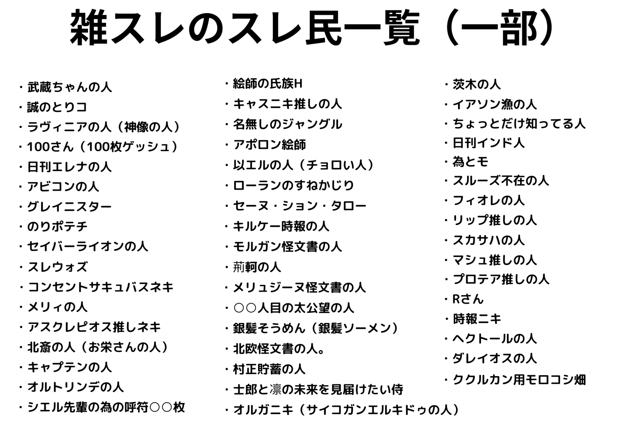 これが登録済みの特級スレ民一覧ですか本当にここの雑スレにはお世話になりました。お絵描きが楽しくなったり笑ったり元気もらってます。本当にありがとうございます管理人さん、スレ民さん……!