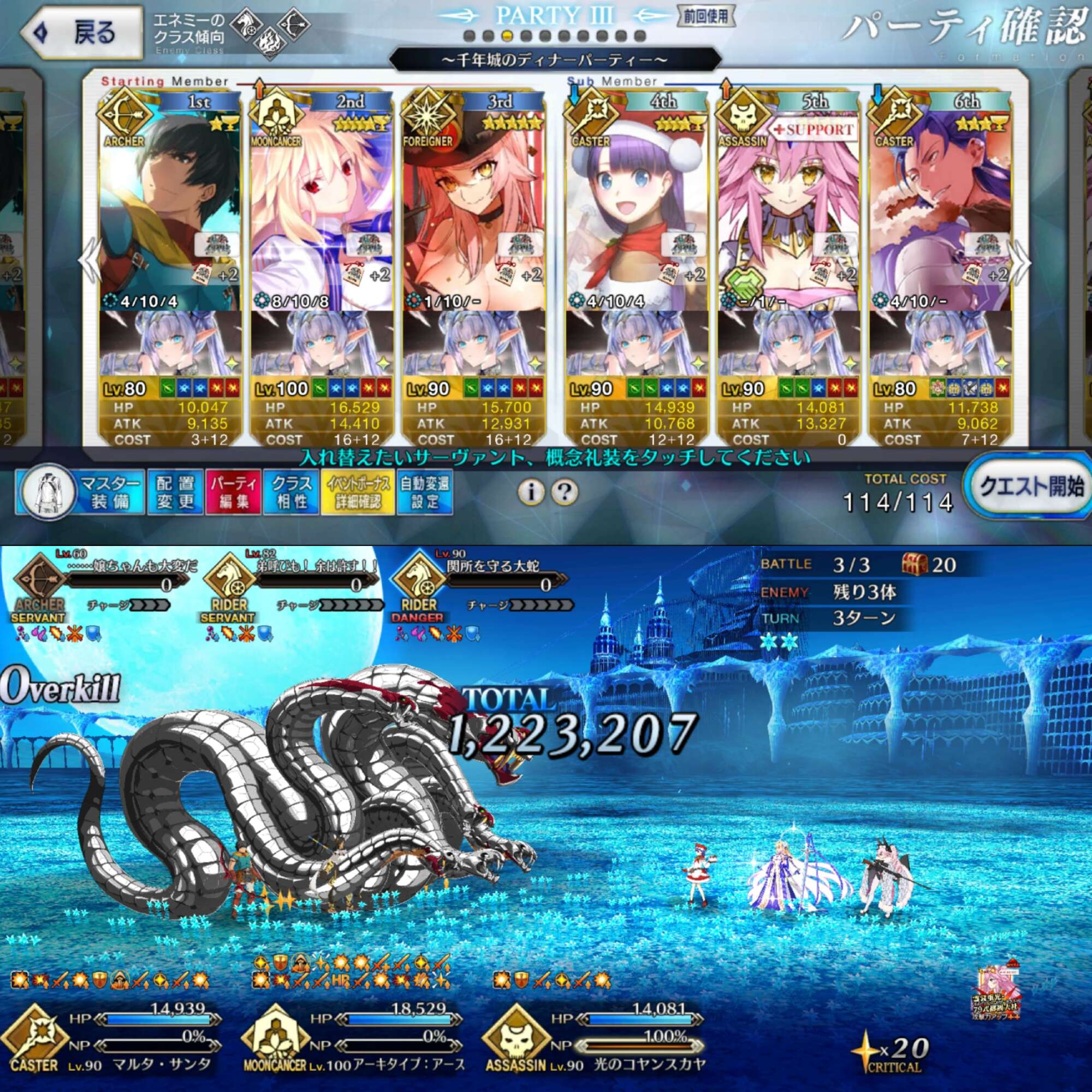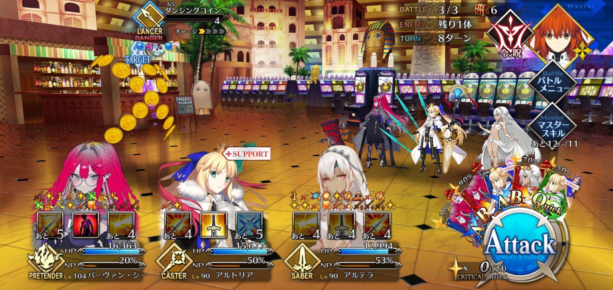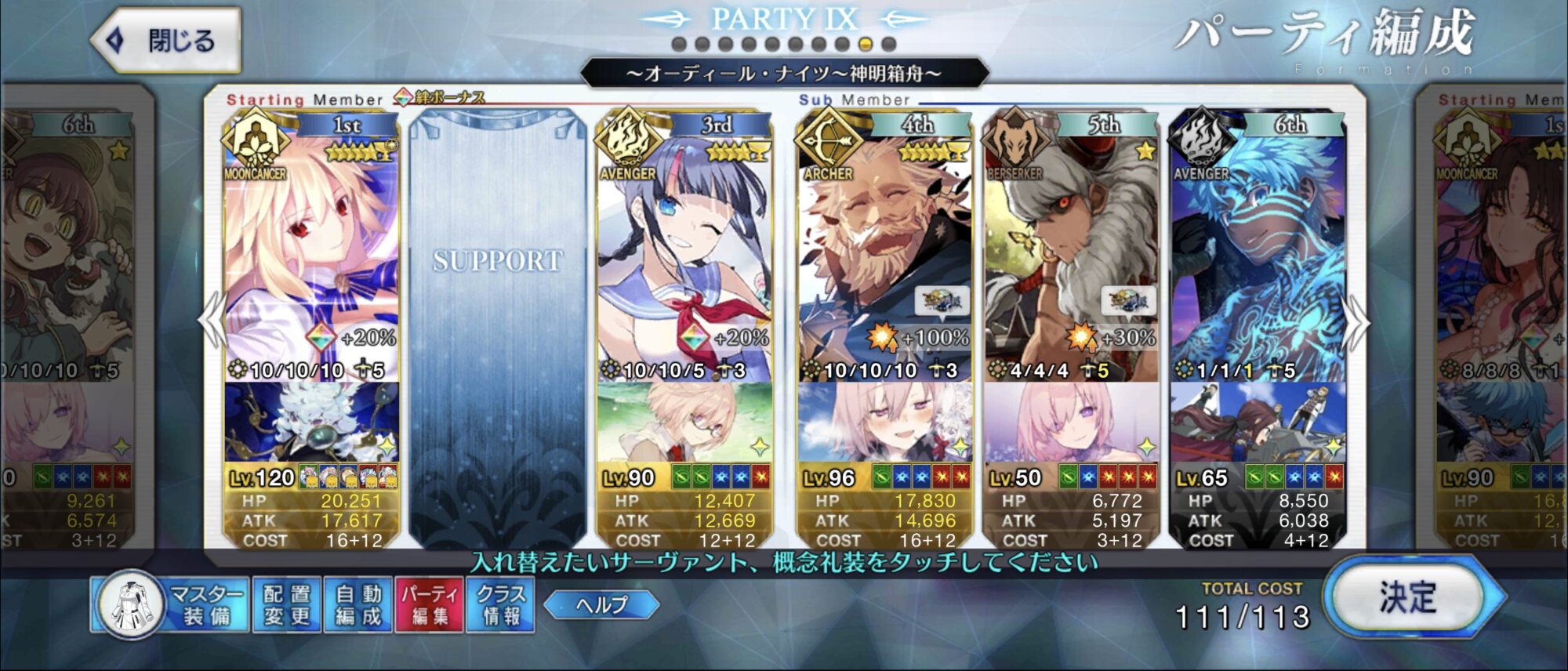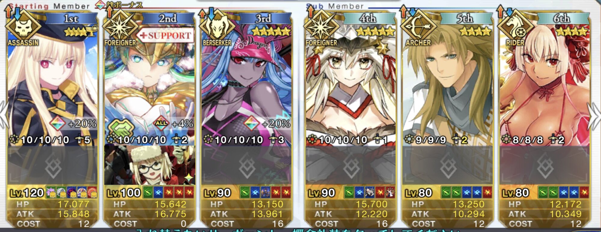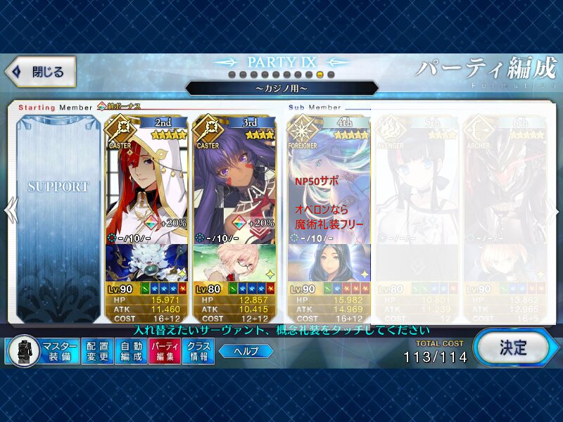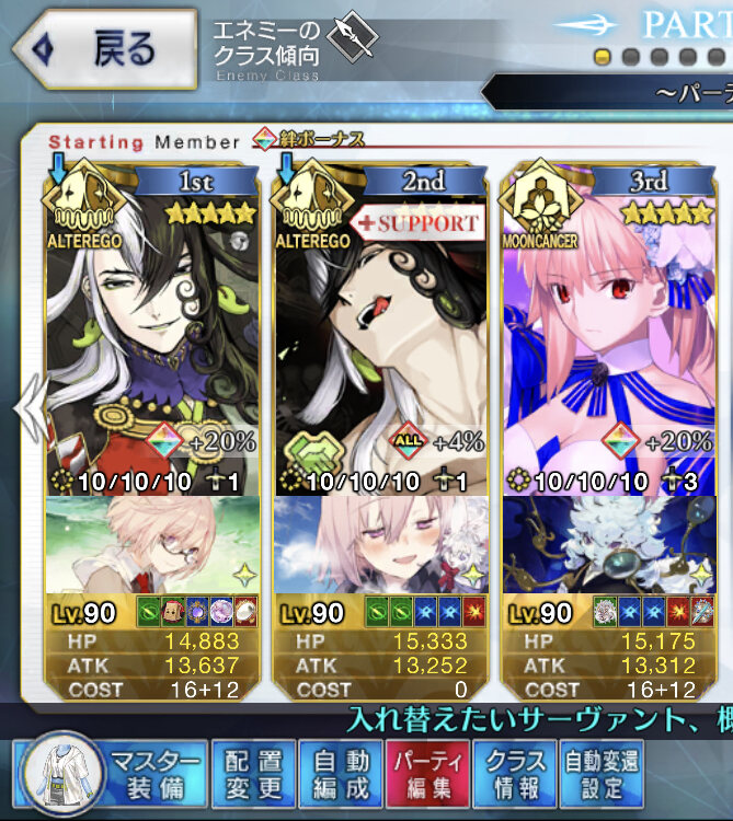 コツは、リンボにお鶴さんのNP30をつけることで、S3温存してNP50サポで宝具打てるところ