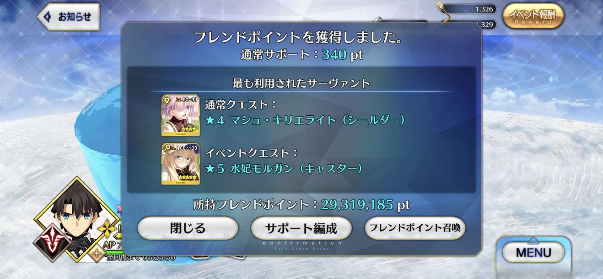 左手、右手、左足、右足、封印されしメリュジーヌの5体をパーティに編成すると必ず3t周回できるぞ!ただし全員星5だしフレンドから借りても宝具は使えないぞ!>>979