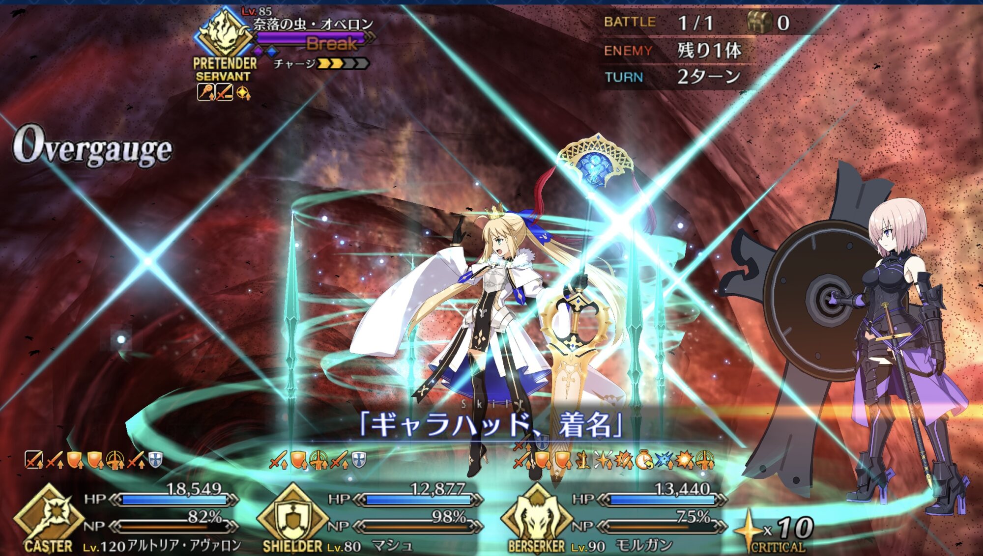 足りないNP10を魔術礼装 or 2waveのNP50サポをオベロンのS1で100 宝具確殺
