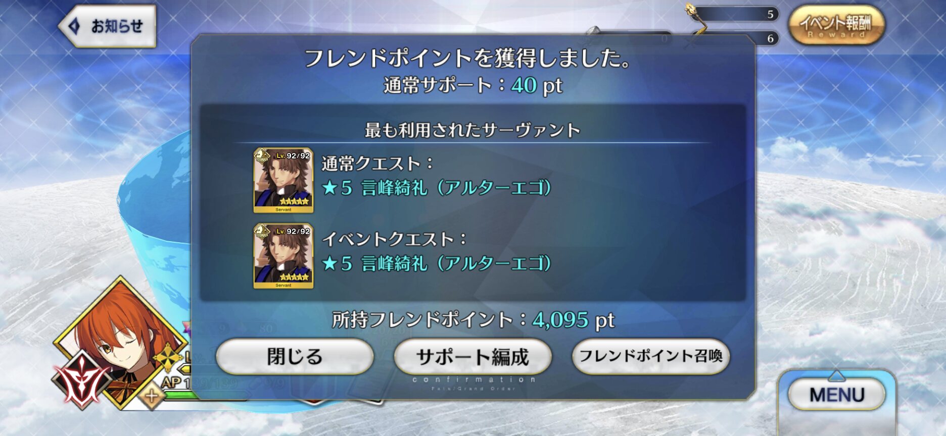 ウィークリーミッションに属性系が出てると面倒くさいが、イベントが重なっていると周回してるウチにいつのまにか達成してる、あるあるだと思います。
