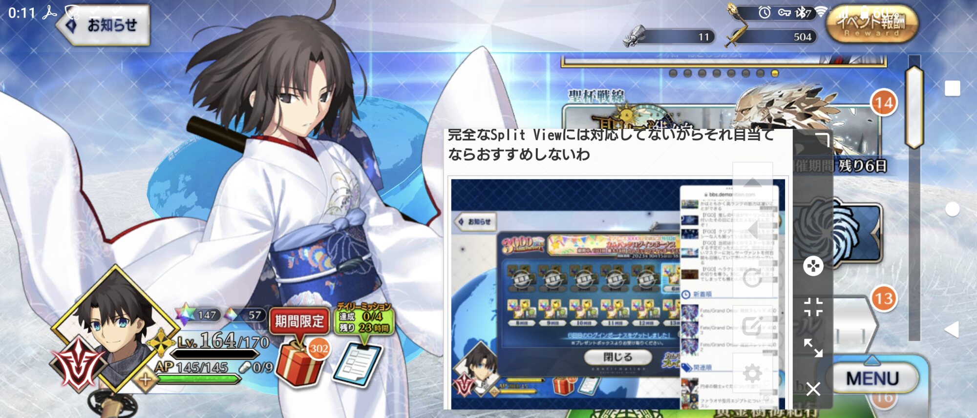 ちなみにAndroidのAQUOSでは少し前までブラウザとゲームをマルチタスク的に起動出来ましたが、今は出来なくなりました
