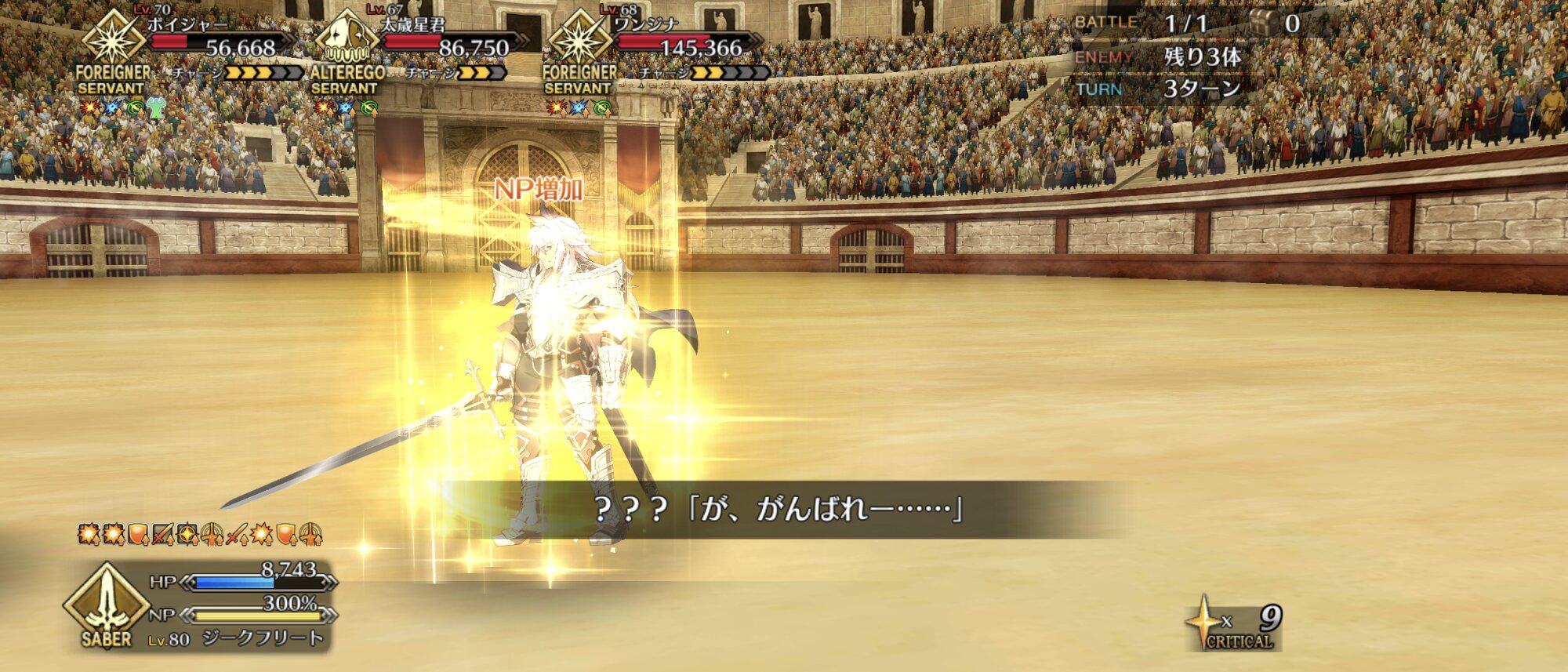 星出してクリティカルで殴るのはクラス相性覆せるくらいに超強いのに、その肝心のクリティカルで殴る時に一番強くなるのが大体の場合でバスターっていうのが……よーし、920とっちゃうぞ☆
