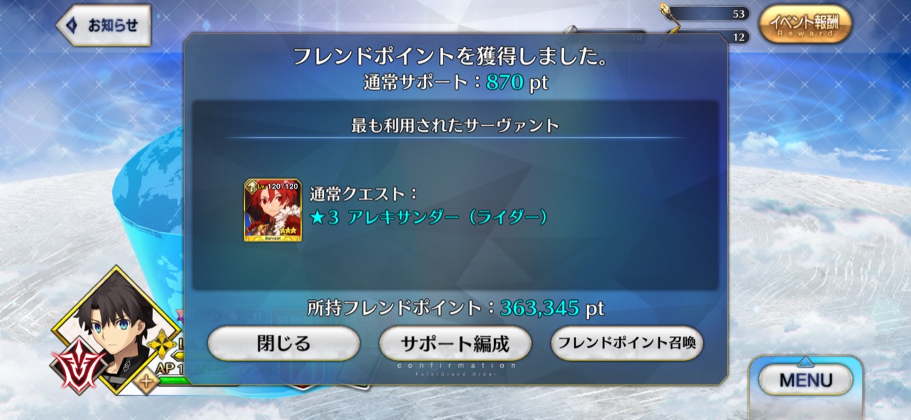1回のイベントで周回する回数とアドバンスドクエストやオルガマリークエストを実際にプレイする回数を比較して考えたら、現状やっぱり周回の方が圧倒的にメインになってるから。