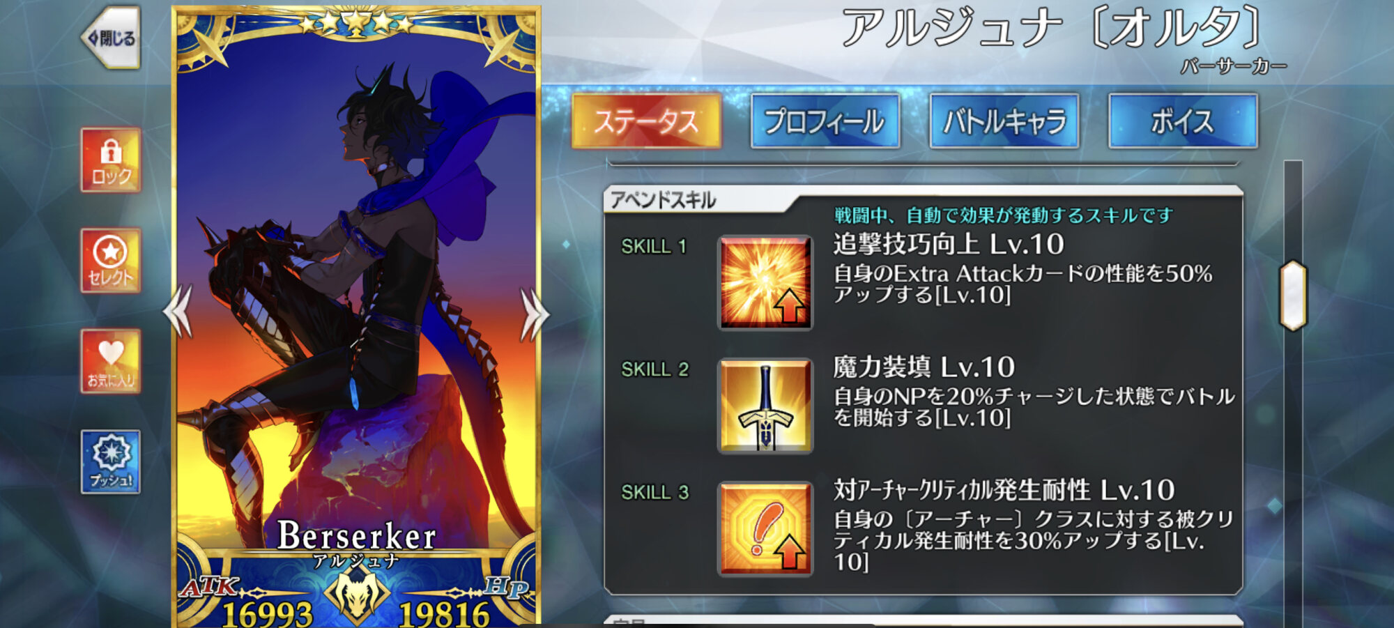 雷帝、マイルームボイスとかは普通だけど戦闘時だとビリビリして変わるのかな