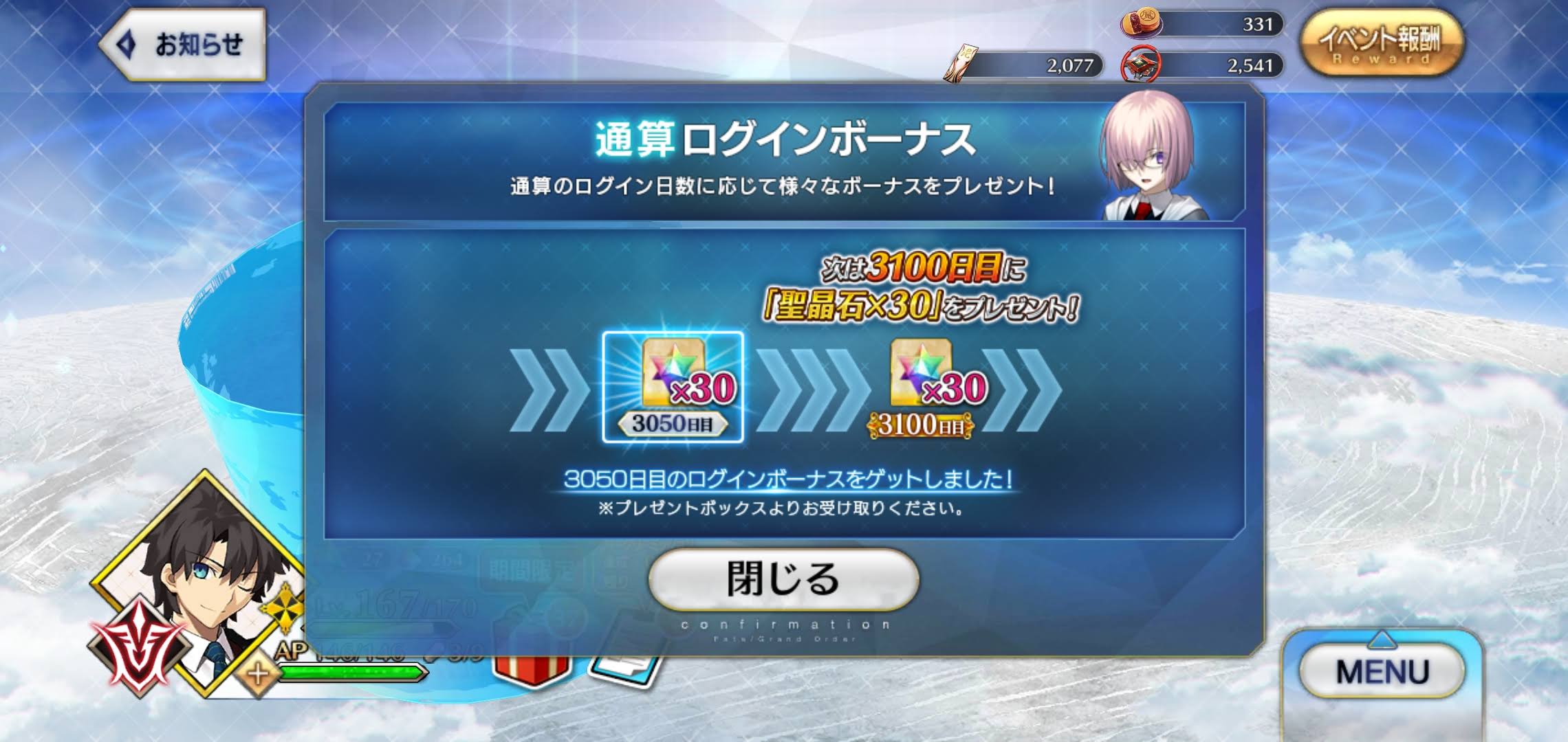 このまま何事もなければ今年はリタイアせずに来年もFGO続けられそうなので、そうなったら私もアンケートにそうやって書きますねー!