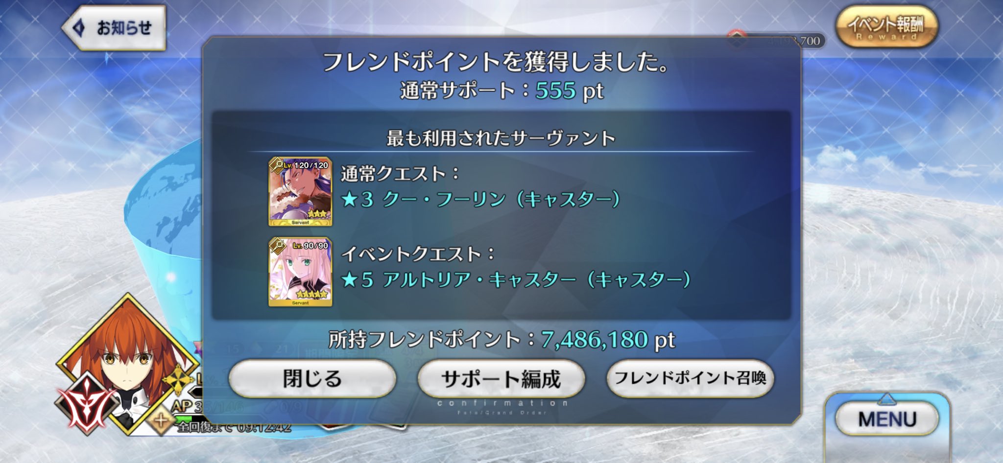 自分はイベント補正が乗っているうちにイベフリクエの90++で頑張ってます。