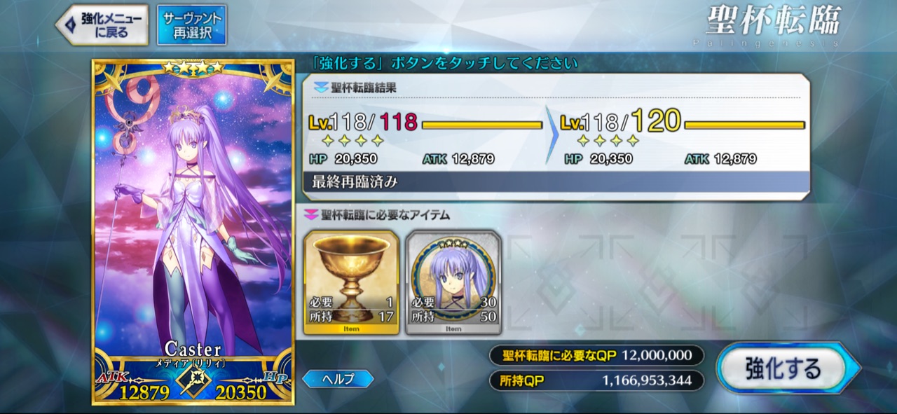 キャラ育成に寿命の概念を持ち込むインフレの極カノウ:ピュアプリズム以外ですと、サーヴァントコインですね。これも以前からやりたいと思っていたことのひとつで、宝具レベルを上げること以外にも、サーヴァントの成長に幅を持たせるものを実装するにいたったというわけです。