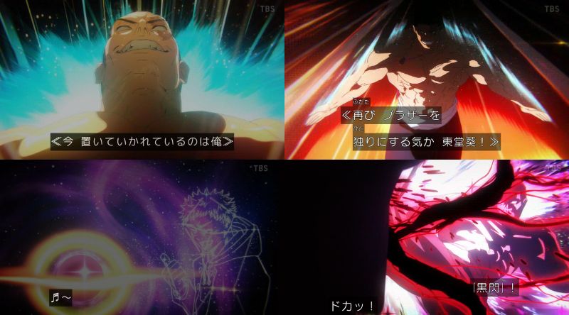 最初の絶望ムードをすっかり塗り替えてくれて、嬉しいねなぁ...ワタシはいつから坐殺博徒の演出みていたのかな...(東堂の黒閃シーンのところ)